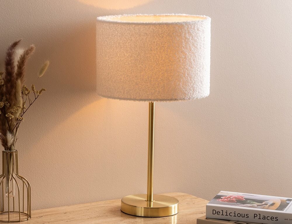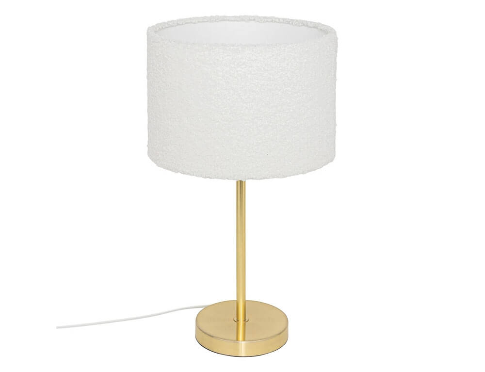 Αναδείξτε την ατμόσφαιρα του χώρου σας με το εκλεπτυσμένο επιτραπέζιο φωτιστικό μας, που συνδυάζει κομψότητα και μοναδικότητα. Το αμπαζούρ από ύφασμα boucle προσφέρει μια ζεστή και φιλόξενη ατμόσφαιρα, ιδανική για κάθε δωμάτιο του σπιτιού σας.