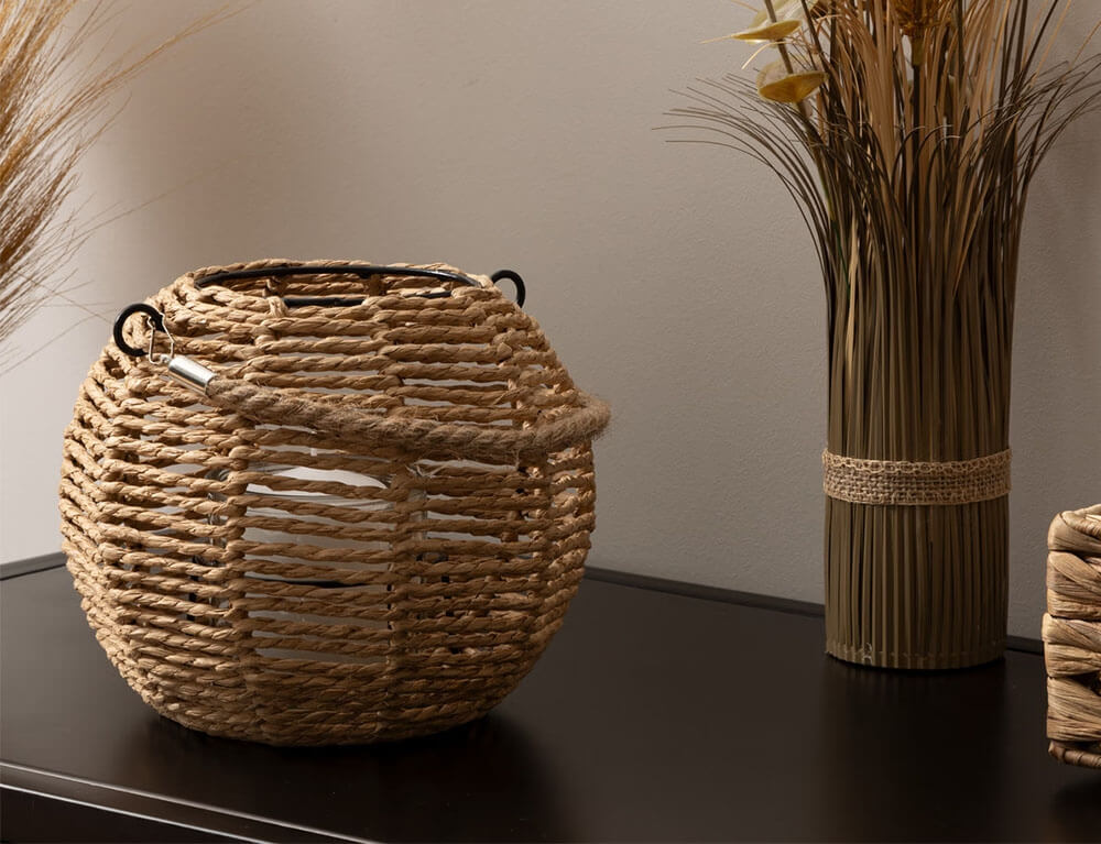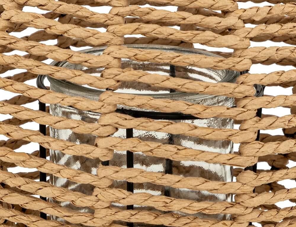 Δημιουργήστε μια ζεστή και ευχάριστη ατμόσφαιρα με το διακοσμητικό φανάρι Maty από την Atmosphera. Στο εσωτερικό του υπάρχει ένα γυάλινο δοχείο για να τοποθετήσετε κερί. Ο σκελετός του είναι κατασκευασμένος από μέταλλο για να είναι πιο σταθερό και ανθεκτικό και είναι καλυμμένος από ψάθα και θα δώσει μια αίσθηση boho στο χώρο σας. Διαθέτει χερούλι για πιο εύκολη μετακίνηση, αλλά και για να το κρεμάσετε όπου επιθυμείτε.