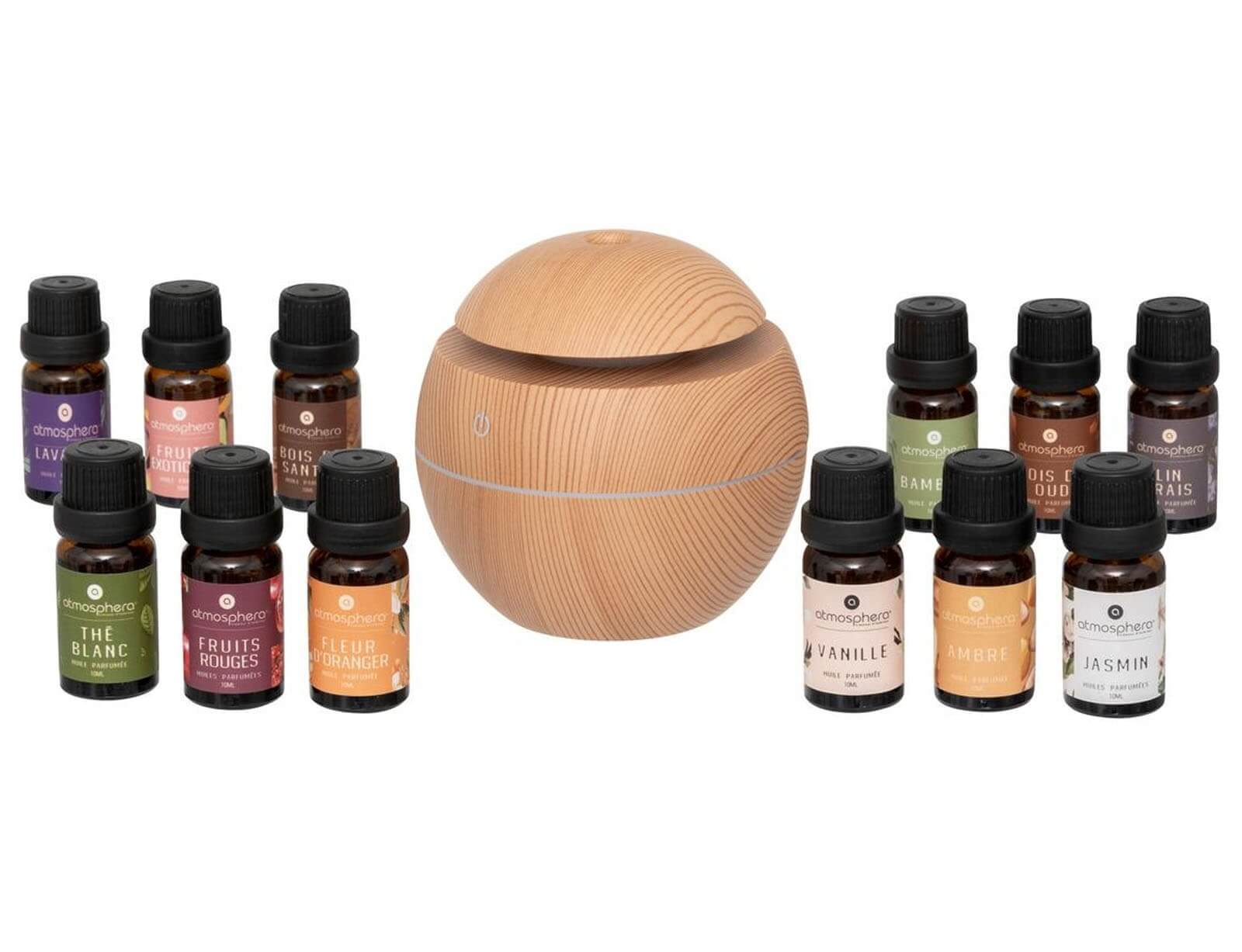 Δημιουργήστε μια χαλαρωτική ατμόσφαιρα στο σπίτι σας με το διαχύτη αιθέριων ελαίων από την Atmosphera. Τα αιθέρια έλαια συμβάλουν στην καλή λειτουργία του αναπνευστικού, διαθέτουν αντιμικροβιακή δράση, ανανεώνουν την ατμόσφαιρα στο χώρο και ανεβάζουν την διάθεσή μας. Επιπλέον, προσφέρουν ηρεμία και ευφορία απομακρύνοντας την ένταση και την πνευματική κούραση. Επιλέξτε ανάμεσα σε 12 αρώματα ανάλογα με τη διάθεσή σας.