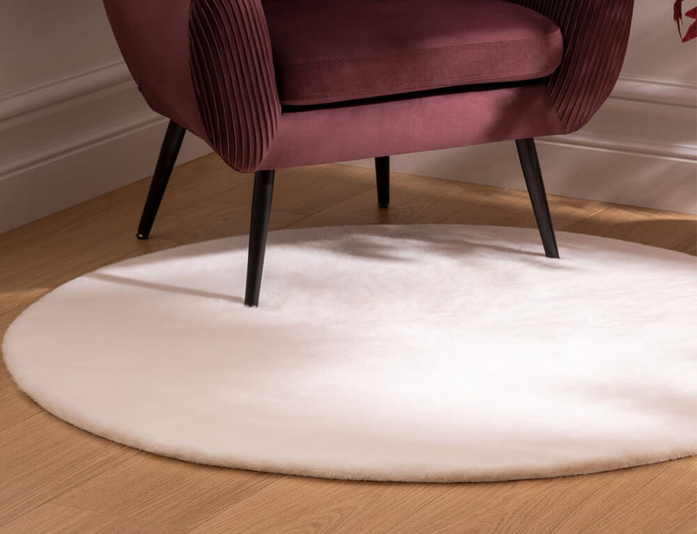 Χαλί γούνινο στρογγυλό Couka Atmosphera με διαστάσεις 118x118x1cm - Σε λευκή απόχρωση