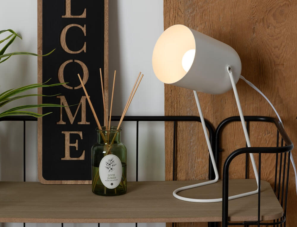 Με το επιτραπέζιο φωτιστικό από την Atmosphera θα δημιουργήσετε μια μοναδική ατμόσφαιρα και θα δώσετε μια μοντέρνα νότα σε οποιοδήποτε χώρο του σπιτιού σας. Είναι κατασκευασμένο από μέταλλο σε λευκή απόχρωση και μπορείτε να ρυθμίσετε τη θέση του αμπαζούρ όπως σας βολεύει.