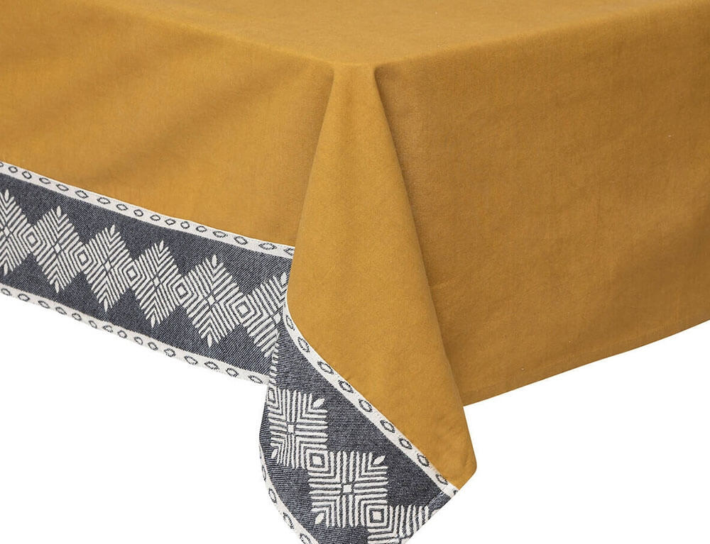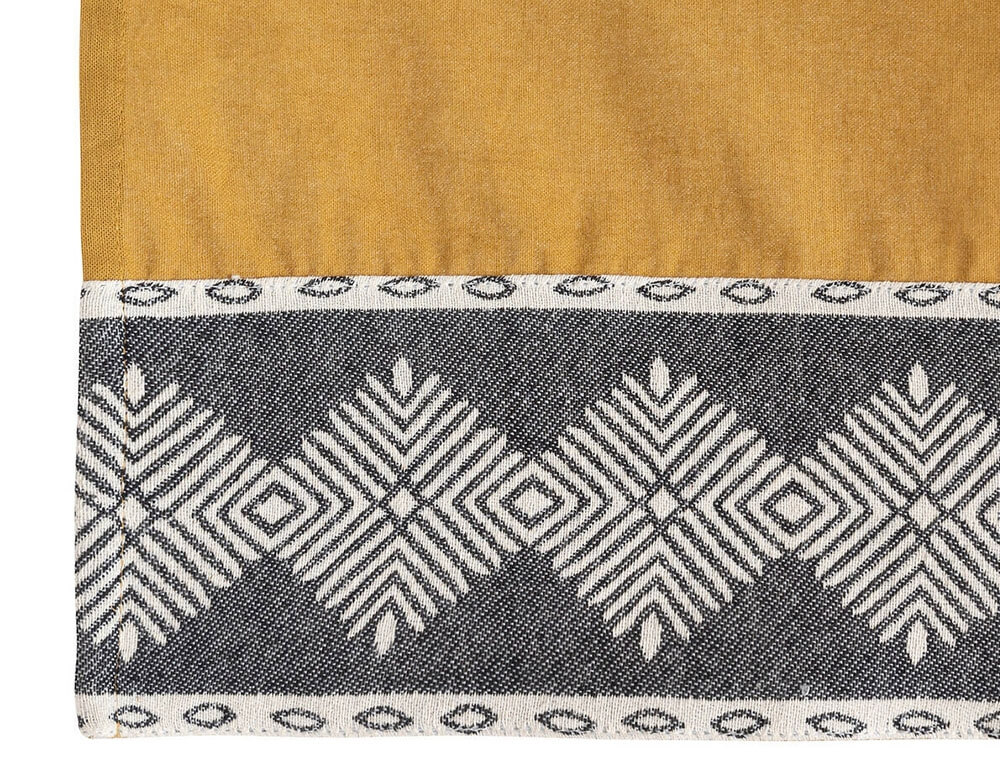 Ανανεώστε και αναδείξτε την τραπεζαρία σας με το σετ τραπεζομάντηλο και πετσέτες φαγητού από την Atmosphera. Η κίτρινη απόχρωση του θα δώσει μια μοντέρνα και κομψή αίσθηση στο χώρο σας, ενώ το μοτίβο στη φάσα θα κάνει το τραπέζι σας να ξεχωρίζει. Είναι κατασκευασμένο από 100% βαμβάκι και καθαρίζεται εύκολα. Για καλύτερη φροντίδα συνίσταται πλύση και σιδέρωμα σε χαμηλές θερμοκρασίες και να μην χρησιμοποιείται κάποιο λευκαντικό.