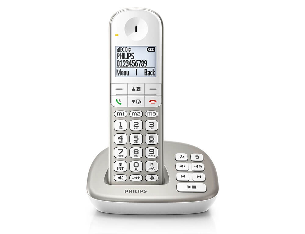Απολαύστε την απλότητα του ασύρματου τηλεφώνου XL495 της Philips. Διαθέτει εξαιρετικά μεγάλη οθόνη και πλήκτρα, άνετη συσκευή χειρός και χρήσιμες λειτουργίες, όπως τηλεφωνητή, ενίσχυση έντασης, συμβατότητα με ακουστικά βαρηκοΐας και πολλές καταχωρήσεις τηλεφωνικού καταλόγου.