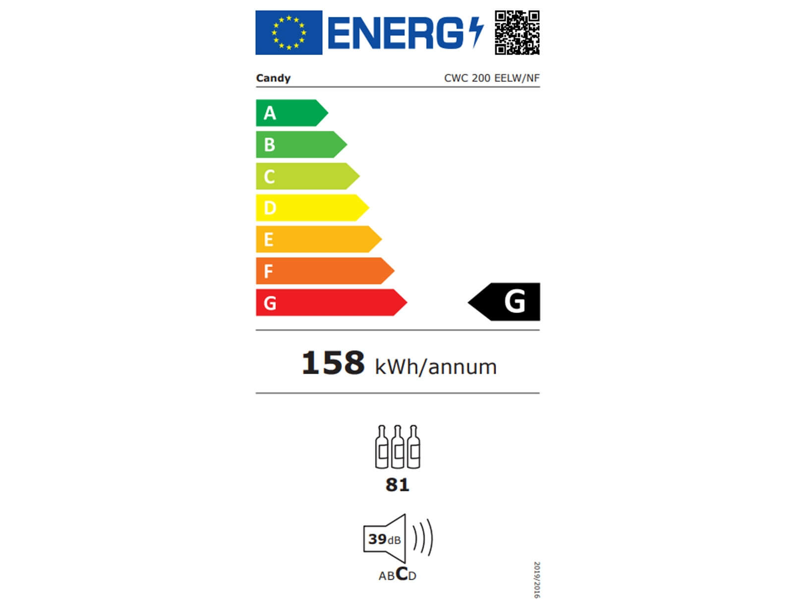 Συντηρητής Κρασιού Candy CWC 200 EELW/NF με ενεργειακή κλάση G και χωρητικότητα 81 φιάλες