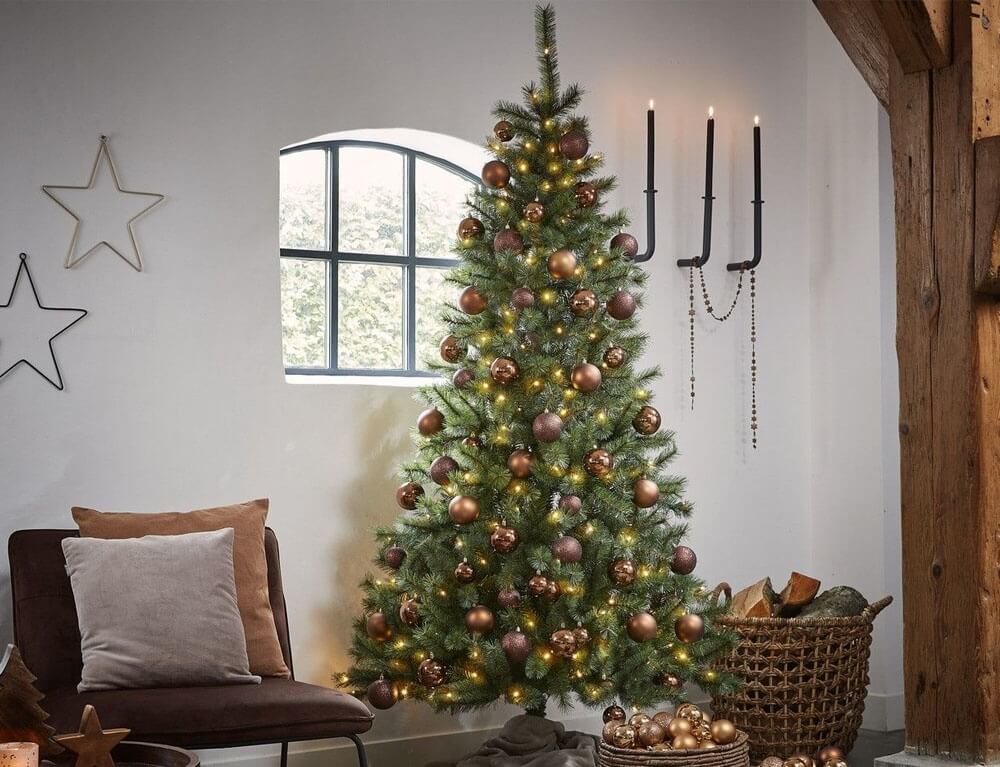 Κατασκευασμένο από υλικά υψηλής ποιότητας, το δέντρο είναι ανθεκτικό και προσφέρει πιο φυσικό και εντυπωσιακό αποτέλεσμα, προσθέτοντας για πολλά χρόνια μια νότα μαγείας στο χώρο σας. Τα εξωτερικά κλαδιά είναι κατασκευασμένα από σκληρές βελόνες PVC, το καλύτερο υλικό για φυσική εμφάνιση. Τα εσωτερικά κλαδιά είναι εξοπλισμένα με μαλακές βελόνες PVC, έτσι ώστε το δέντρο να φαίνεται ωραίο και γεμάτο. Χάρη στα ενσωματωμένα κλαδιά που επιτρέπουν γρήγορη και απλή συναρμολόγηση, το δέντρο σας θα είναι έτοιμο να υποδεχτεί τη γιορτινή ατμόσφαιρα σε ελάχιστο χρόνο!