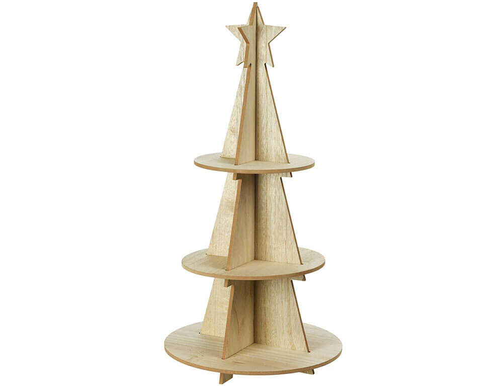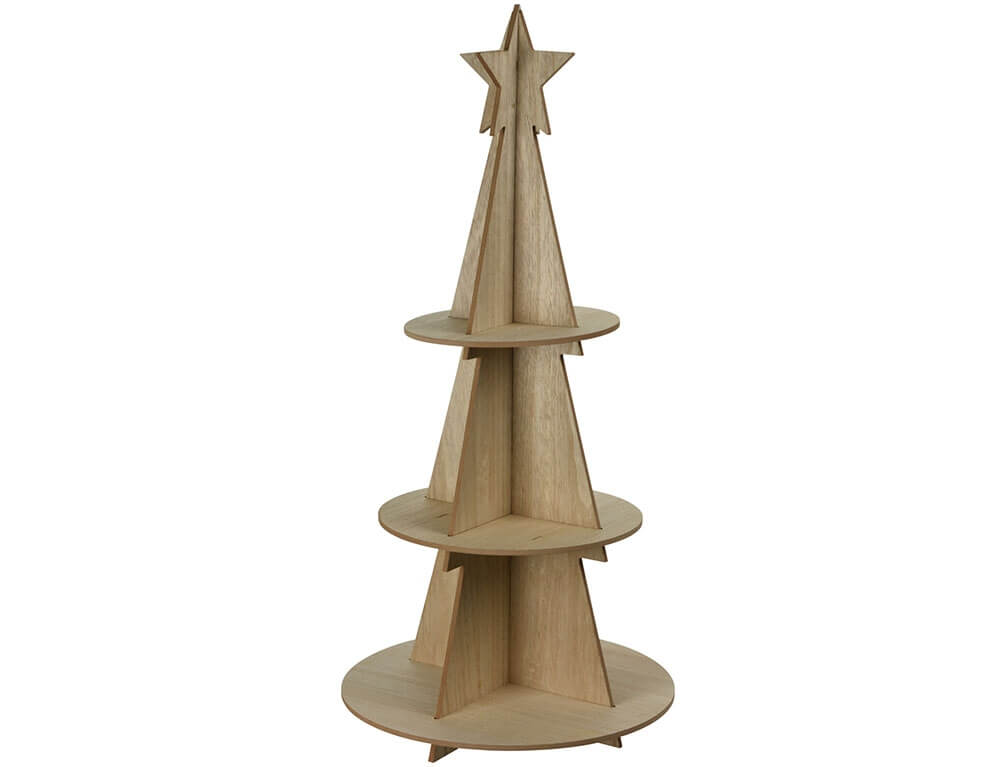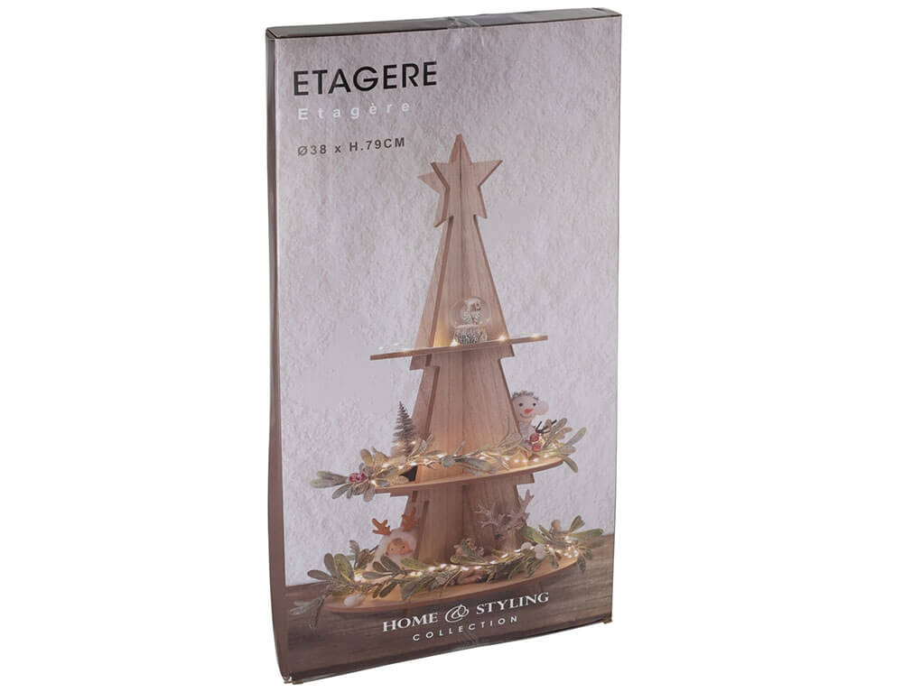 Αναβαθμίστε τη. εορταστική διακόσμηση του χώρου σας με την εταζέρα με 3 επίπεδα. Με την εταζέρα σε σχήμα χριστουγεννιάτικου δέντρου έχετε τη δυνατότητα να αναδείξετε με μοναδικό τρόπο διάφορα διακοσμητικά και να δημιουργήσετε ιδιαίτερες συνθέσεις. Παράλληλα, μπορεί να χρησιμοποιηθεί και για να σερβίρετε διάφορα γλυκίσματα στους καλεσμένους σας και να αναβαθμίσετε το εορταστικό τραπέζι. Είνα κατασκευασμένη από ξύλο λεύκας, ένα ανθεκτικό υλικό, το οποίο θα δώσει και μια φυσική αίσθηση στο χώρο σας.