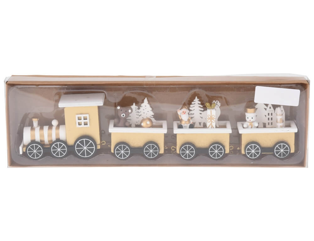 Προσθέστε μια δόση παραμυθένιας ατμόσφαιρας στη γιορτινή σας διακόσμηση με το υπέροχο ξύλινο τρενάκι μας! Κατασκευασμένο με αγάπη και προσοχή στη λεπτομέρεια, αυτό το τρενάκι θα κλέψει τις εντυπώσεις! Είναι ιδανικό για τη διακόσμηση σε τραπέζι, ράφι ή και κάτω από το χριστουγεννιάτικο δέντρο. Τo τρενάκι έχει πιστοποίηση FSC, που σημαίνει ότι είναι φιλικό προς το περιβάλλον.