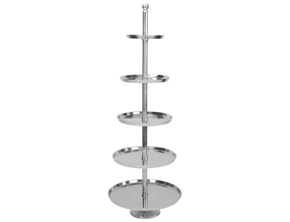 Είτε σχεδιάζετε ένα πάρτι, μια οικογενειακή συγκέντρωση ή μια επίσημη εκδήλωση, η εταζέρα 5 επιπέδων είναι ο καλύτερος σύμμαχος στην παρουσίαση των γεύσεών σας. Τα πέντε επίπεδα προσφέρουν άφθονο χώρο για να εκφράσετε τη δημιουργικότητά σας! Σερβίρετε μικρά ορεκτικά, γλυκά, φρούτα ή τυριά με στυλ και φινέτσα. Ο κομψός σχεδιασμός της ορντεβιέρας μας θα προσθέσει μία νότα πολυτέλειας στο τραπέζι σας. Είναι κατασκευασμένη από αλουμίνιο και διαθέτει καμπύλη στις άκρες για να μην πέσει τίποτα κάτω.