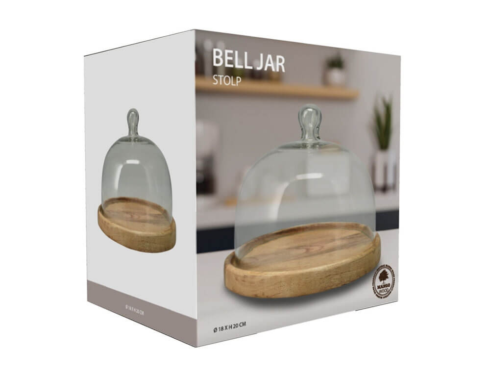 Ξύλινη Τουρτιέρα με γυάλινο καπάκι και διαστάσεις 20x20x18cm
