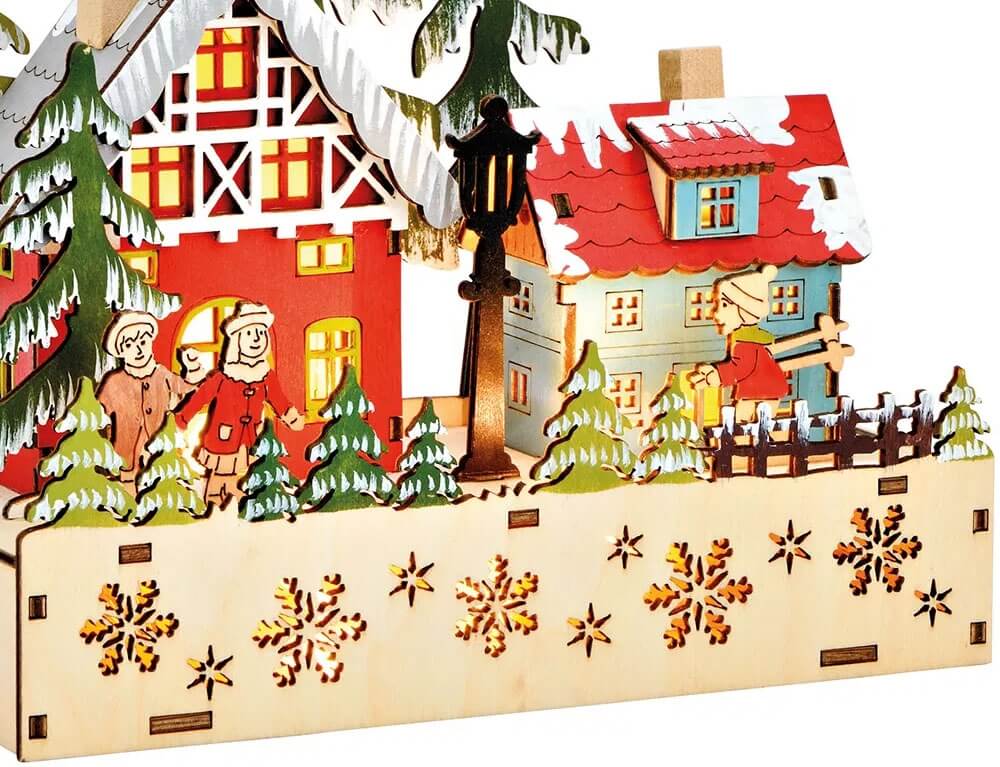 Αναδείξτε τη μαγεία των Χριστουγέννων με την εκπληκτική μας διακοσμητική παράσταση από ξύλο, φωτισμένη με LED! Δημιουργήστε μια ατμόσφαιρα ζεστασιάς και μαγείας στον χώρο σας με ένα μοναδικό στολίδι που θα κλέψει τις εντυπώσεις. Ο ενσωματωμένος φωτισμός LED θα μεταμορφώσει το χώρο σας, προσφέροντας έναν υπέροχο φωτισμό είτε ημέρα είτε νύχτα. H περίτεχνη κατασκευή και το ξύλινο στοιχείο θα δώσουν μια ζεστή και φυσική αίσθηση που θα γεμίσει το σπίτι σας με την ευτυχία των Χριστουγέννων!