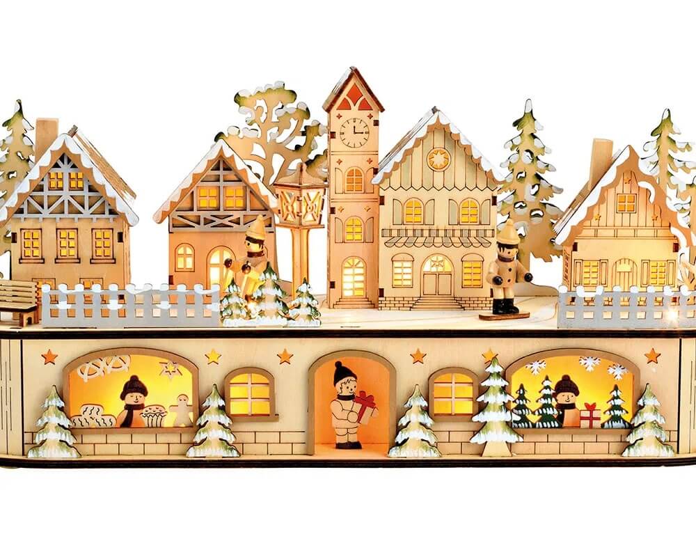 Αναδείξτε τη μαγεία των Χριστουγέννων με την εκπληκτική μας διακοσμητική παράσταση από ξύλο, φωτισμένη με LED! Δημιουργήστε μια ατμόσφαιρα ζεστασιάς και μαγείας στον χώρο σας με ένα μοναδικό στολίδι που θα κλέψει τις εντυπώσεις. Ο ενσωματωμένος φωτισμός LED θα μεταμορφώσει το χώρο σας, προσφέροντας έναν υπέροχο φωτισμό είτε ημέρα είτε νύχτα. H περίτεχνη κατασκευή και το ξύλινο στοιχείο θα δώσουν μια ζεστή και φυσική αίσθηση που θα γεμίσει το σπίτι σας με την ευτυχία των Χριστουγέννων!