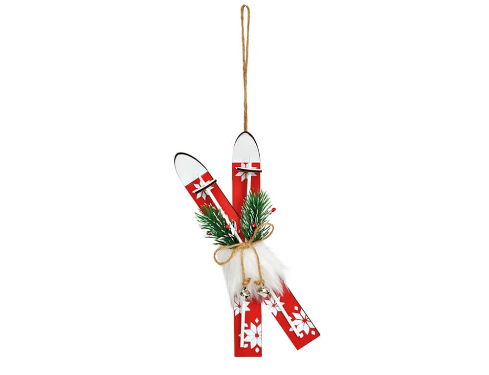 Κάντε την γιορτινή σας διακόσμηση να ξεχωρίζει με το μοναδικό κρεμαστό στολίδι σε σχήμα πεδιλιών του σκι! Αυτό το εντυπωσιακό στολίδι θα φέρει στην οικογένειά σας την μαγεία των χιονισμένων βουνών και των αξέχαστων στιγμών στο χιόνι. Ιδανικό για τους λάτρεις του σκι, προσθέτει μια νότα περιπέτειας στη Χριστουγεννιάτικη διακόσμηση. Κατασκευασμένο με προσοχή στην λεπτομέρεια, είναι ζωγραφισμένο με όμορφα και ζωντανά χρώματα, που φωτίζουν το γιορτινό σας δέντρο και προσθέτουν μια νότα μαγείας στην ατμόσφαιρα.