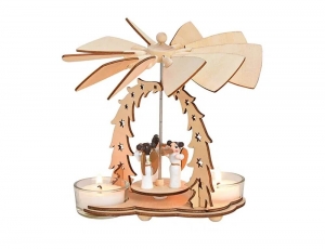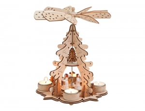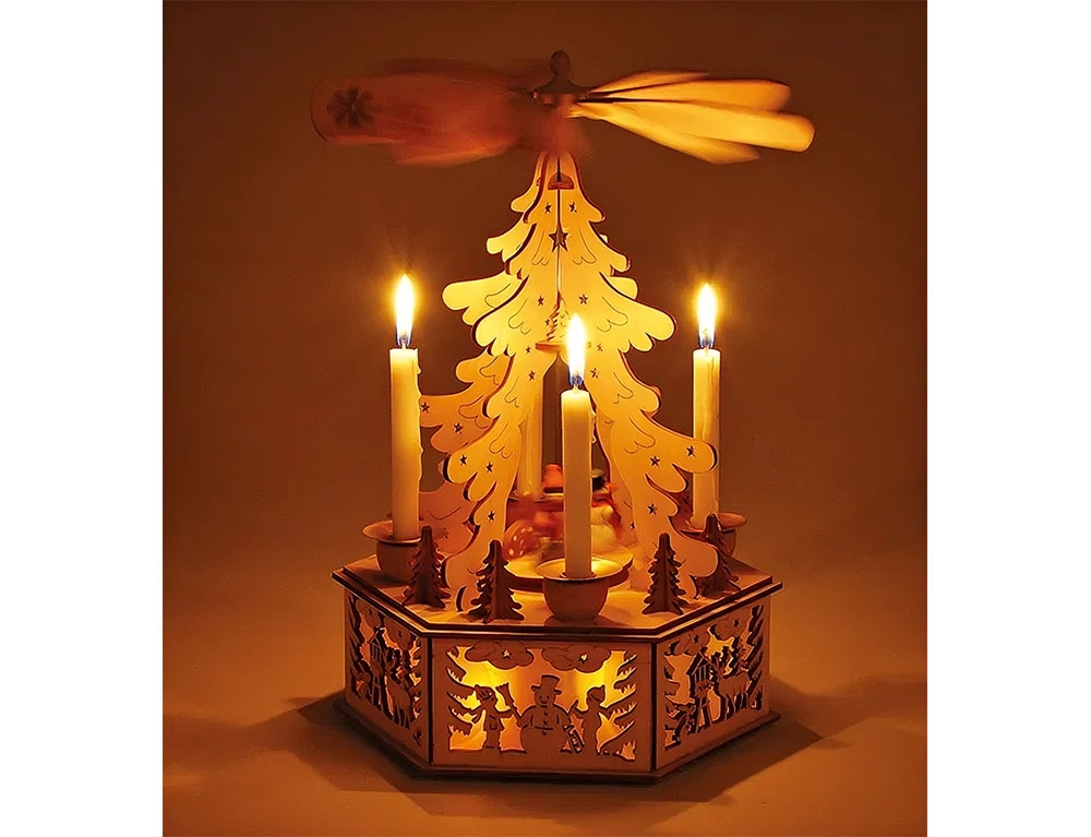 Η πυραμίδα διαθέτει λεπτομερείς χειροποίητες φιγούρες και μια μαγευτική περιστροφή που θα ενθουσιάσει μικρούς και μεγάλους. Αποτελείται από δύο επίπεδα, τα οποία αναπαριστούν ένα δέντρο και αγγέλους. Περιμετρικά της υπάρχουν υποδοχές για κεριά και στην κορυφή της πυραμίδας υπάρχει φτερωτή, η οποία περιστρέφεται από το θερμό αέρα που δημιουργείται από τα αναμμένα κεριά. Με την κίνηση της φτερωτής, περιστρέφονται και το ένα επίπεδο. Το φως των αναμμένων κεριών σε συνδυασμό με τις σκιές που δημιουργούνται από τη φτερωτή θα δημιουργήσουν μια ιδιαίτερη ατμόσφαιρα στο χώρο σας και θα γίνει το επίκεντρο της χριστουγεννιάτικης σας διακόσμησης.