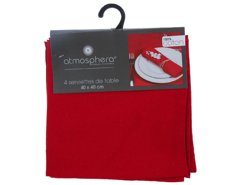 Σετ Πετσέτες φαγητού Atmosphera με διαστάσεις 40x40cm - Red - 4 τεμάχια