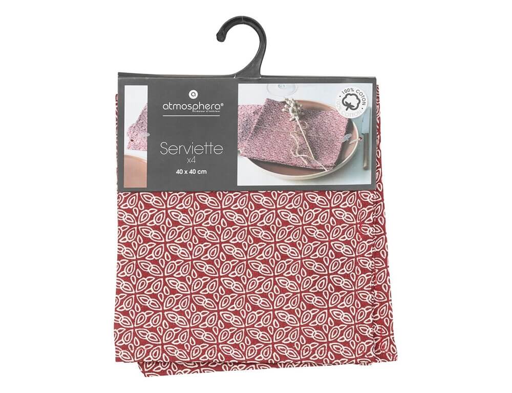 Σετ Πετσέτες φαγητού Olia Atmosphera με διαστάσεις 40x40cm - Red - 4 τεμάχια