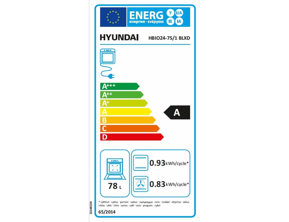 Εντοιχιζόμενος φούρνος Hyundai HBIO24-75/1 BLXD με χωρητικότητα 78L και ενεργειακή κλάση Α