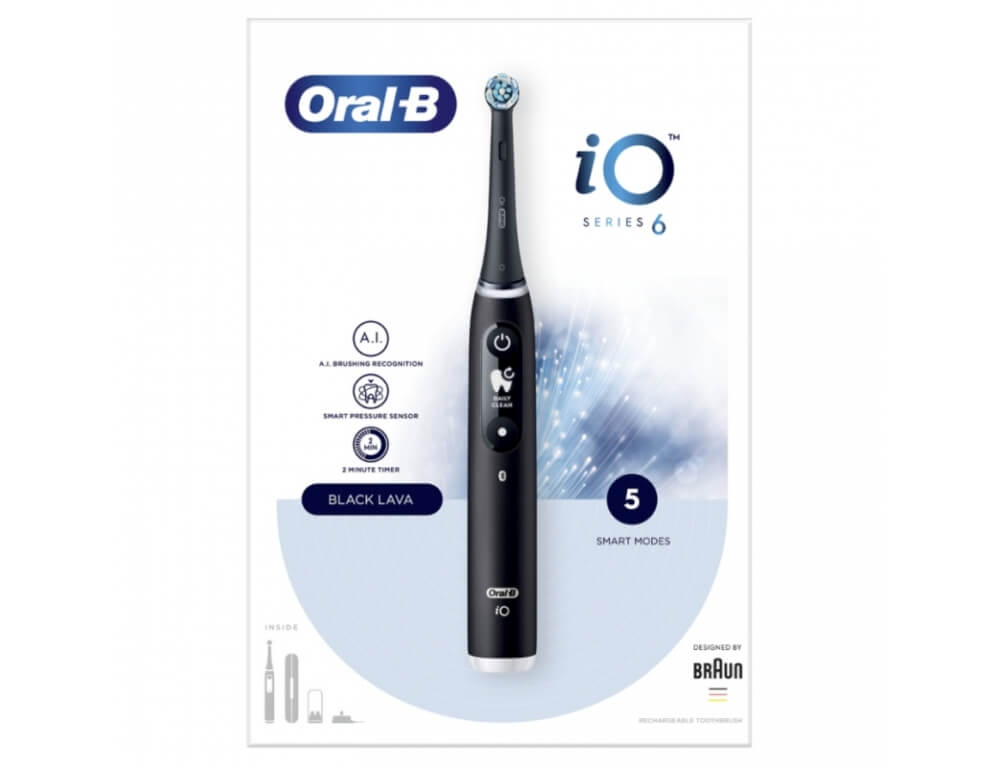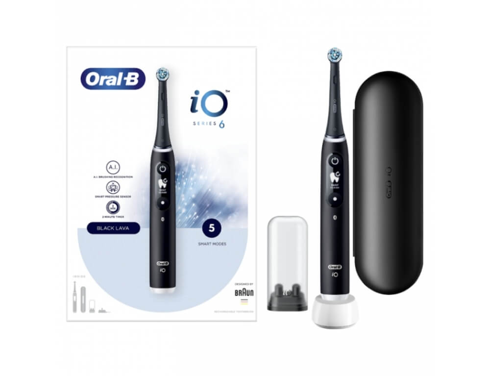 Ηλεκτρική επαναφορτιζόμενη Οδοντόβουρτσα Oral-B IO Series 6 με Χρονομετρητή, Αισθητήρα Πίεσης και Θήκη, Black Lava