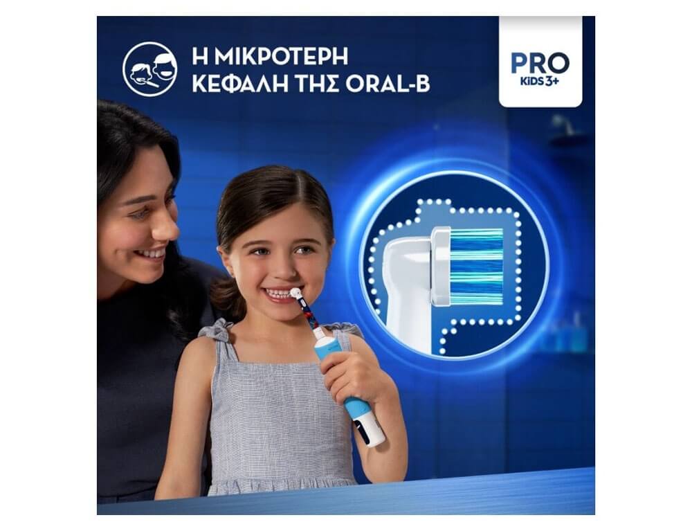 Η Oral-B Vitality Pro Kids είναι η ιδανική λύση για τον ενθουσιασμό και τη φροντίδα της στοματικής υγιεινής των παιδιών ηλικίας 3 ετών και άνω. Με την χαρακτηριστική κεφαλή καθαρισμού, αυτή η ηλεκτρική οδοντόβουρτσα προσφέρει σημαντικά καλύτερους καθαριστικούς μηχανισμούς σε σύγκριση με μια παραδοσιακή χειροκίνητη οδοντόβουρτσα, συμβάλλοντας στην πρόληψη της τερηδόνας.