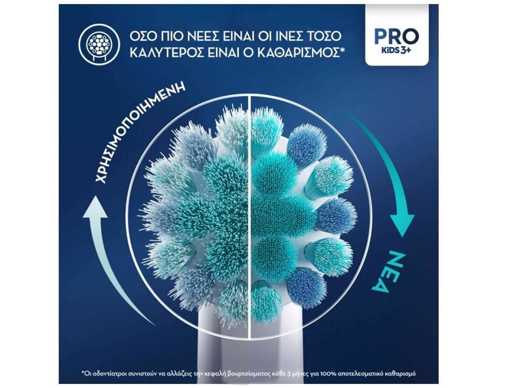 Η Oral-B Vitality Pro Kids είναι η ιδανική λύση για τον ενθουσιασμό και τη φροντίδα της στοματικής υγιεινής των παιδιών ηλικίας 3 ετών και άνω. Με την χαρακτηριστική κεφαλή καθαρισμού, αυτή η ηλεκτρική οδοντόβουρτσα προσφέρει σημαντικά καλύτερους καθαριστικούς μηχανισμούς σε σύγκριση με μια παραδοσιακή χειροκίνητη οδοντόβουρτσα, συμβάλλοντας στην πρόληψη της τερηδόνας.