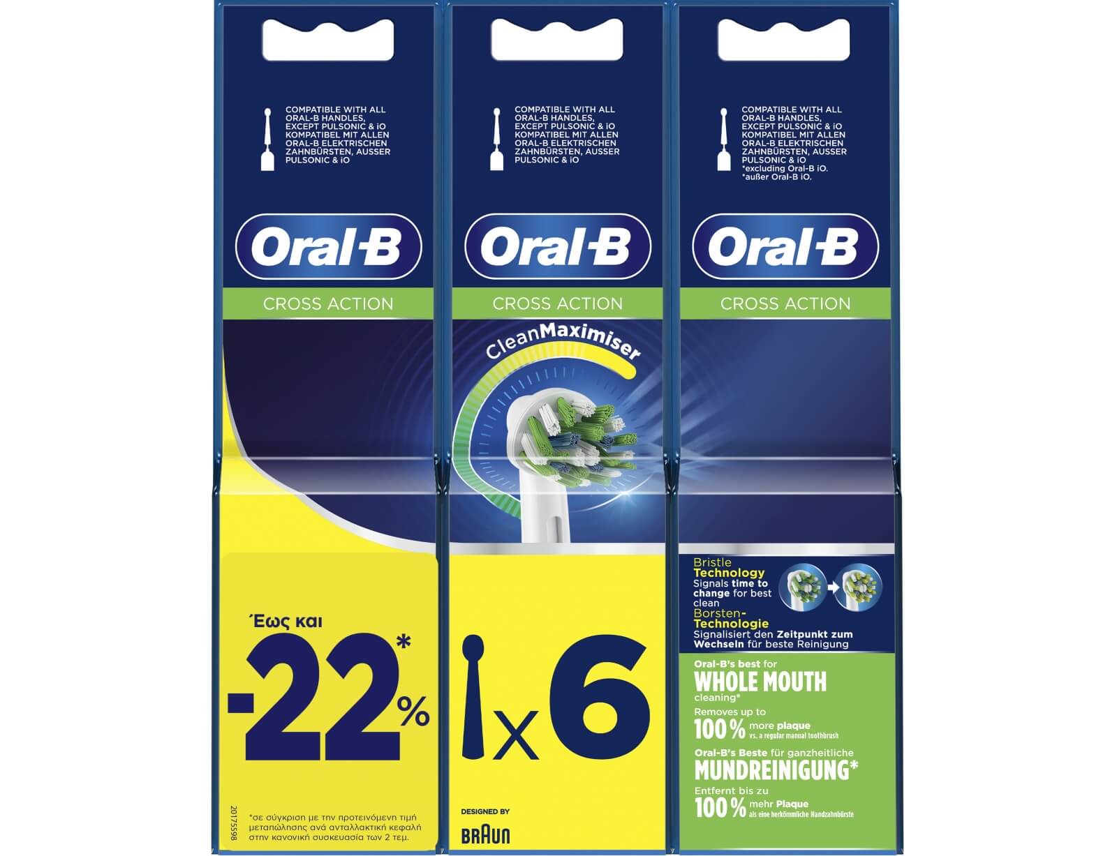 6 Ανταλλακτικές Κεφαλές Ηλεκτρικής Οδοντόβουρτσας Oral-B Cross Action Clean Maximiser