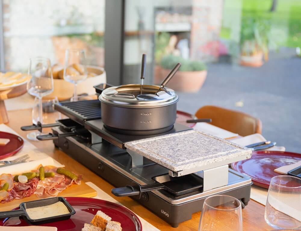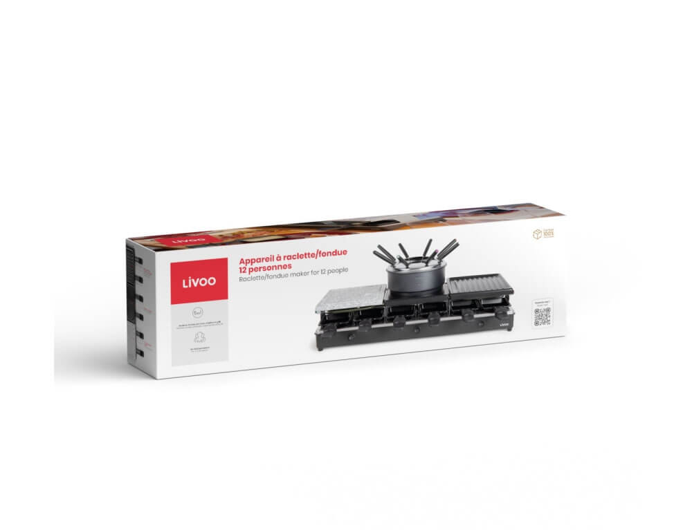 Γκριλιέρα Raclette και Φοντύ Livoo DOC234 για 12 άτομα, με ισχύ 1650W, 3 θερμοστάτες και 3 επιφάνειες ψησίματος