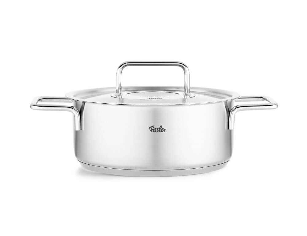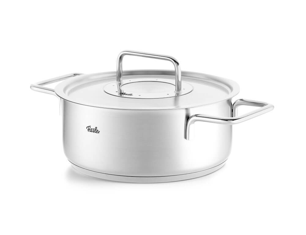 Η κατσαρόλα της εταιρείας Fissler είναι κατασκευασμένη από ανοξείδωτο ατσάλι, ένα υλικό ιδιαίτερα ανθεκτικό σε υψηλές θερμοκρασίες, το οποίο θερμαίνεται πολύ γρήγορα και μπορεί να διατηρήσει τη θερμοκρασία για περισσότερη ώρα σε σχέση με τις κατσαρόλες αλουμινίου. Επιπλέον, είναι συμβατή με όλες τις εστίες, ακόμα και τις επαγωγικές, ενώ χάρη στο υλικό της, η κατσαρόλα είναι κατάλληλη και για μαγείρεμα στον φούρνο.