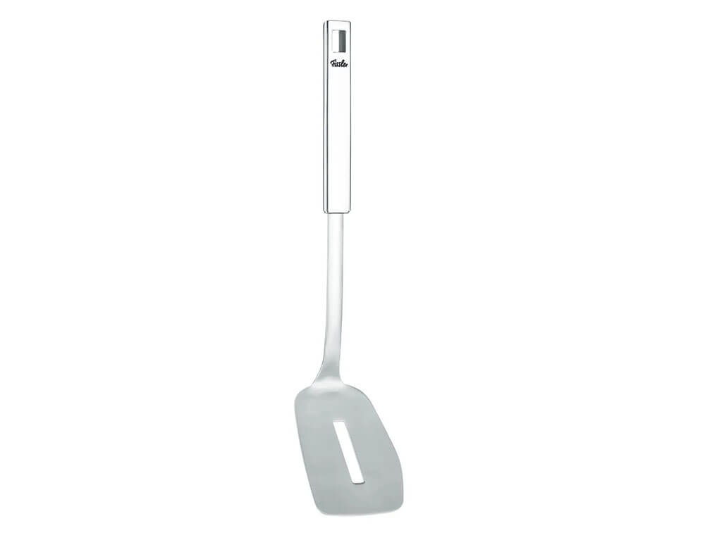 Η σπάτουλα σερβιρίσματος της Fissler είναι σχεδιασμένη για μακροχρόνια αντοχή και ευκολία στον καθαρισμό, συνδυάζοντας λειτουργικότητα με κομψό σχεδιασμό. Κατασκευασμένη από σιλικόνη για να ανταποκρίνεται στις υψηλότερες απαιτήσεις. Εξοπλισμένη με μακριά λαβή για άνετη χρήση που διευκολύνει το σερβίρισμα. Το εργονομικό της χερούλι προσφέρει άνεση και έλεγχο, ενώ το ανθεκτικό της υλικό εγγυάται μακροχρόνια χρήση. Διαθέτει οπή για να την κρεμάσετε είτε στον τοίχο είτε σε κάποια βάση.