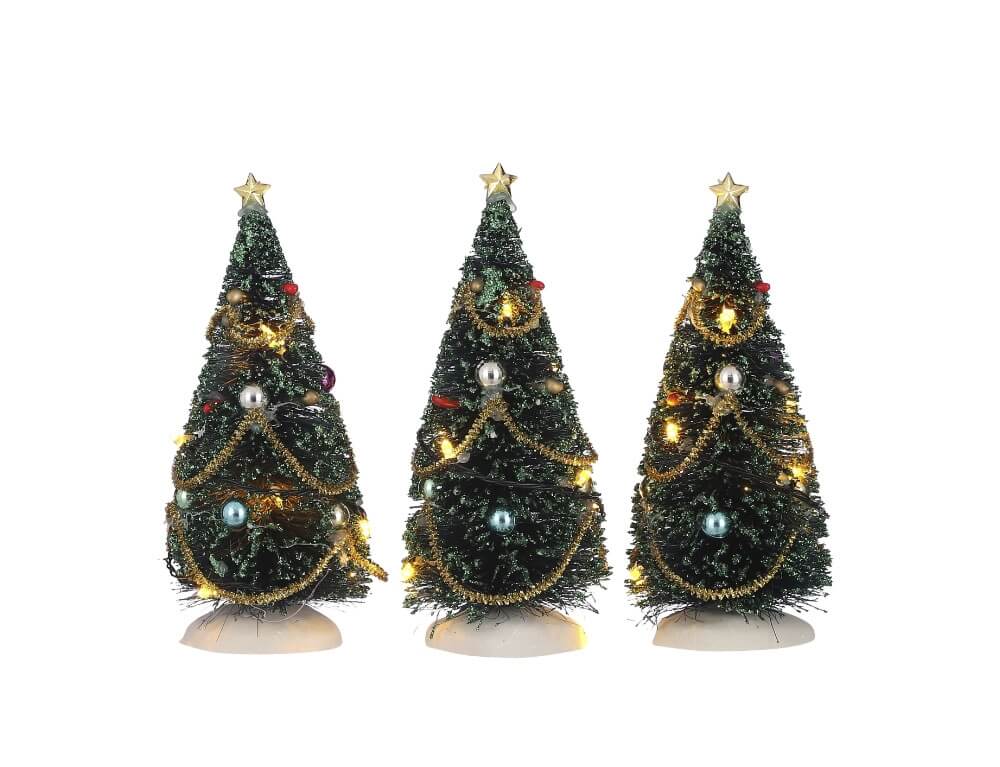 Προσθέστε μια νότα μαγείας σε κάθε γωνία του χώρου σας με το σετ χριστουγεννιάτικα διακοσμητικά δέντρα. Διακοσμημένα με γιρλάντες, πολύχρωμες μπάλες, φωτάκια και αστέρι στην κορυφή, τα δέντρα θα γίνουν το επίκεντρο του χριστουγεννιάτικου χωριού σας. Μπορούν να συνδυαστούν με διάφορα διακοσμητικά και φιγούρες ή να φτιάξετε μια δική σας σύνθεση με κεριά ή άλλα δεντράκια για πιο εντυπωσιακό αποτέλεσμα.