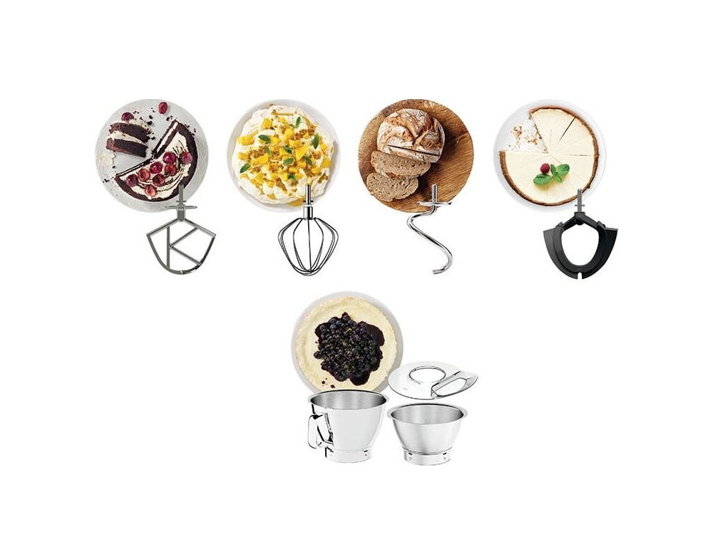 Ο Αναδευτήρας K συνοδεύεται από δύο ακόμα αναδευτήρες ανοξείδωτο ατσάλι, ένα χτυπητήρι και έναν γάντζο ζύμης. Επιπλέον, έναν αναδευτήρα flexi. Αντιμετωπίστε κάθε συνταγή με αυτοπεποίθηση. Όλα είναι κατάλληλα για εύκολο καθάρισμα στο πλυντήριο πιάτων.
