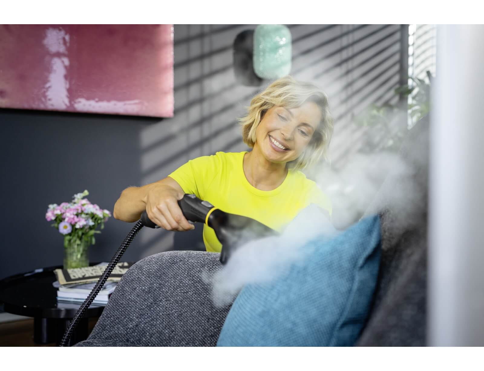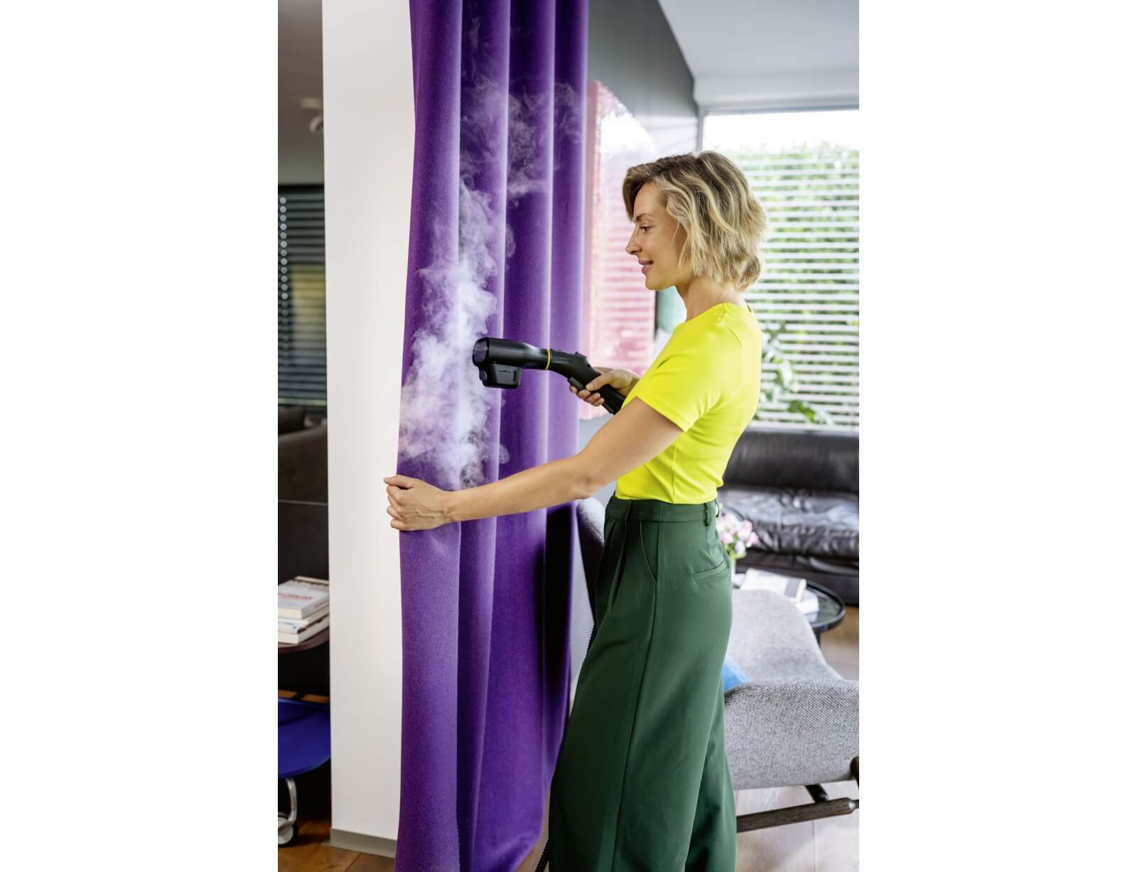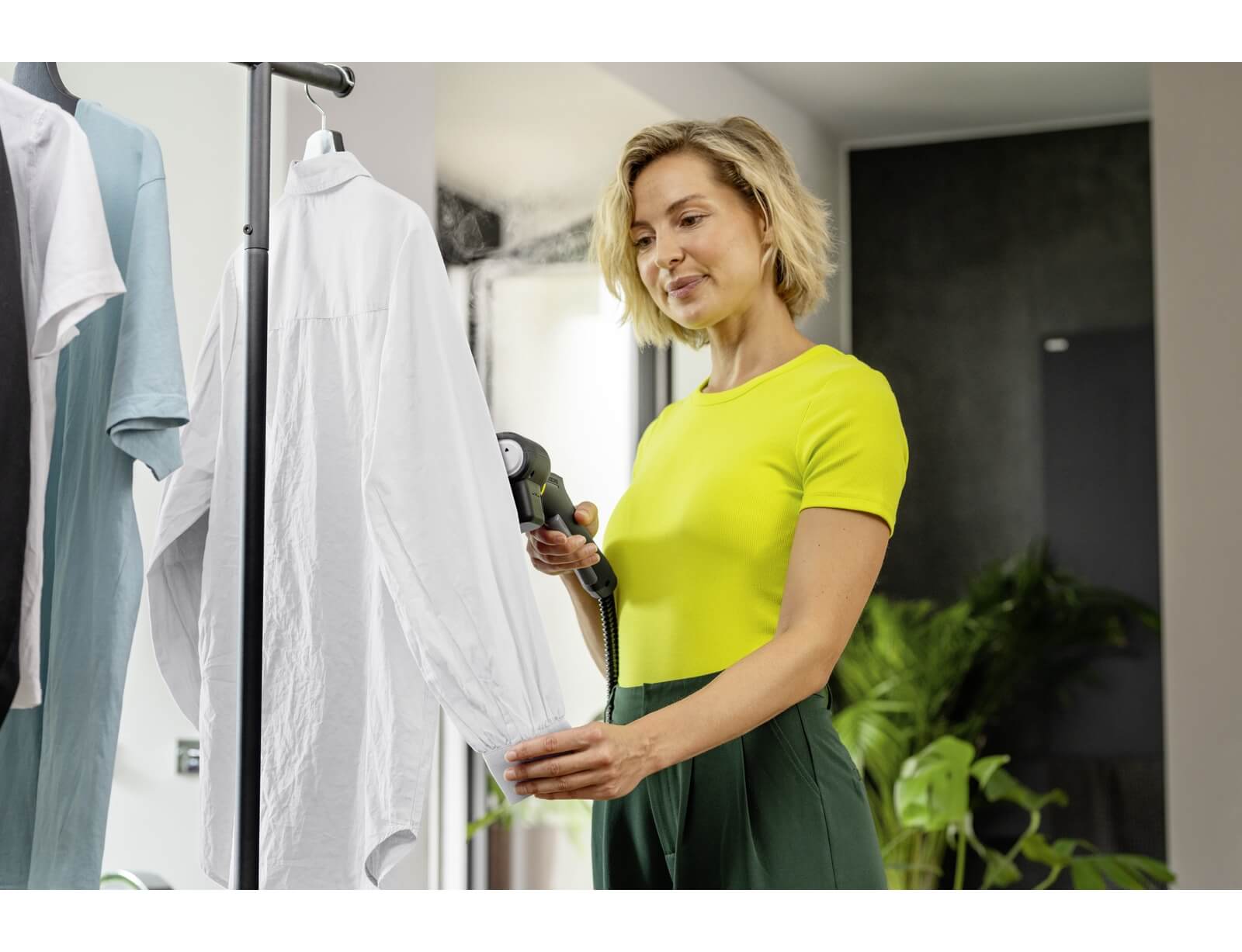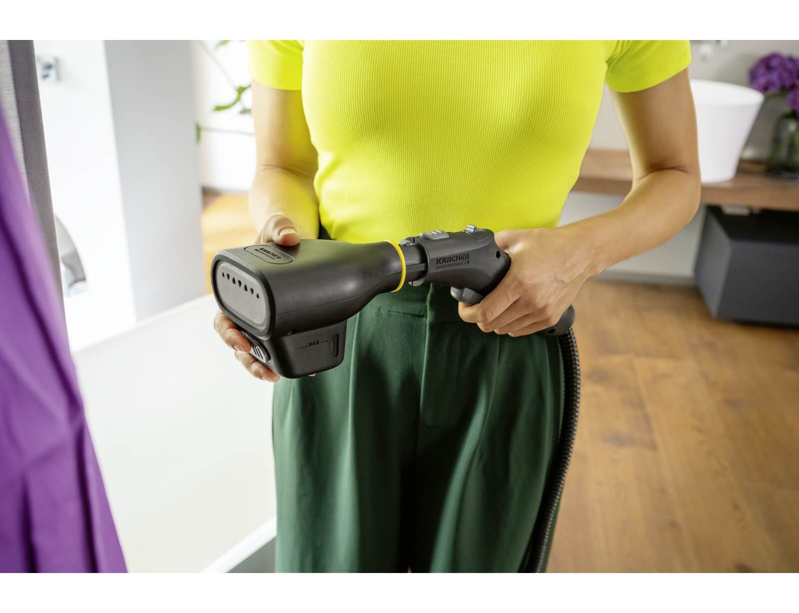 Με το σύστημα ατμού κάθετου σιδερώματος, τα ρούχα δείχνουν και πάλι τα καλύτερά τους σε χρόνο μηδέν. Κάνει επίσης γρήγορο και εύκολο το φρεσκάρισμα των ρούχων, των κουρτινών και πολλών άλλων υφασμάτων και διώχνει τις δυσάρεστες οσμές. Το σύστημα ατμού κάθετου σιδερώματος επιτρέπει σε κάθε ατμοκαθαριστή Kärcher να διεισδύει στο ύφασμα με εξαιρετικά ξηρό και ζεστό ατμό για να φρεσκάρει τις ίνες μέχρι τον πυρήνα τους. Το νερό που παράγεται κατά τον ψεκασμό με το εξάρτημα συλλέγεται σε ξεχωριστό δοχείο, το οποίο μπορεί απλά να αδειάσει στον νεροχύτη ή ακόμα και στο δοχείο του ατμοκαθαριστή.