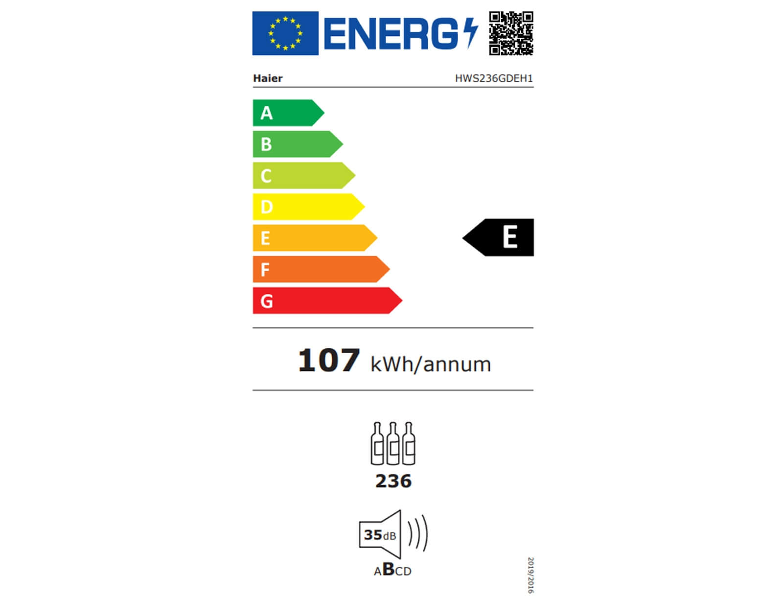 Συντηρητής Κρασιού Haier HWS236GDEH1 με 2 Ζώνες Θερμοκρασίας, WiFi, ενεργειακή κλάση Ε και χωρητικότητα 236 φιάλες