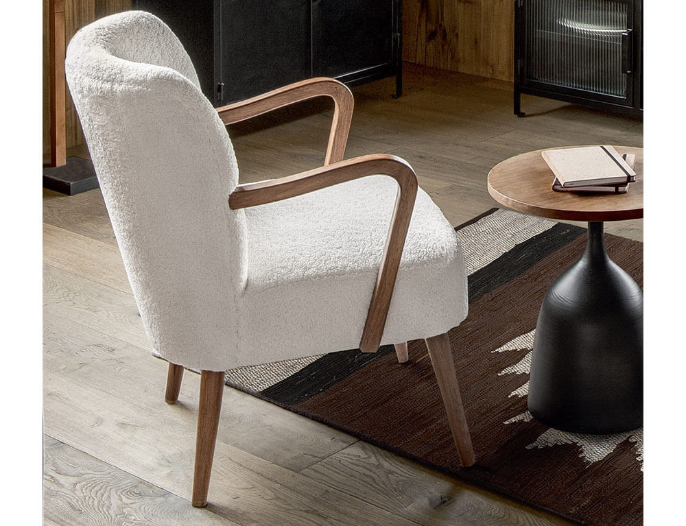 Απολαύστε στιγμές χαλάρωσης και αναβαθμίστε το χώρο σας με την πολυθρόνα Chiara από τη Atmosphera. Με τη minimal σχεδίαση με πλέξη boucle αυτή η καρέκλα έχει σχεδιαστεί για όσους θέλουν να συνδυάσουν εκλεπτυσμένο στυλ και απόλυτη άνεση στο χώρο τους. Σχεδιασμένη με βαθύ κάθισμα και εργονομική πλάτη, αυτή η πολυθρόνα προσφέρει μια χαλαρωτική εμπειρία καθίσματος, ιδανική για να διαβάσετε ένα βιβλίο ή να απολαύσετε χρόνο με τη παρέα σας.