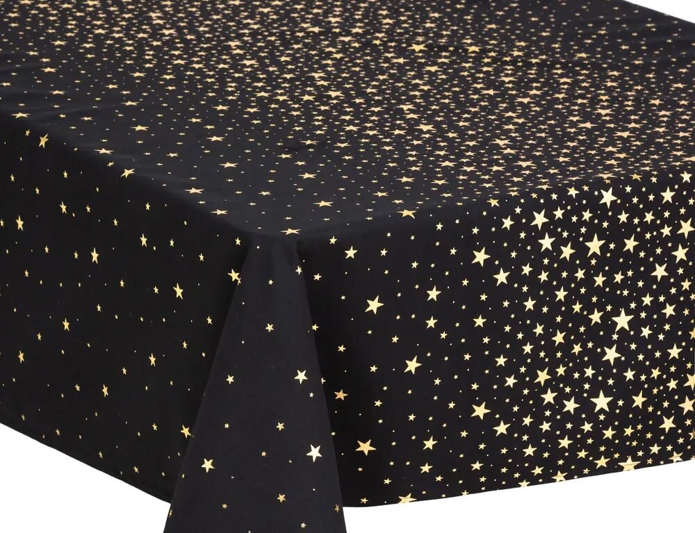 Δημιουργήστε μια ζεστή και γιορτινή αίσθηση στο τραπέζι σας με το τραπεζομάντηλο από την Atmosphera. Η μαύρη του απόχρωση θα δώσει μια μοντέρνα και κομψή νότα, ενώ τα χρυσά αστέρια θα προσθέσουν τη λάμψη που χρειάζεται ένα γιορτινό τραπέζι. Είναι κατασκευασμένο από 100% βαμβάκι και καθαρίζεται εύκολα. Για καλύτερη φροντίδα συνίσταται πλύσιμο στο χέρι και να αποφεύγεται το σιδέρωμα και η χρήση λευκαντικών.