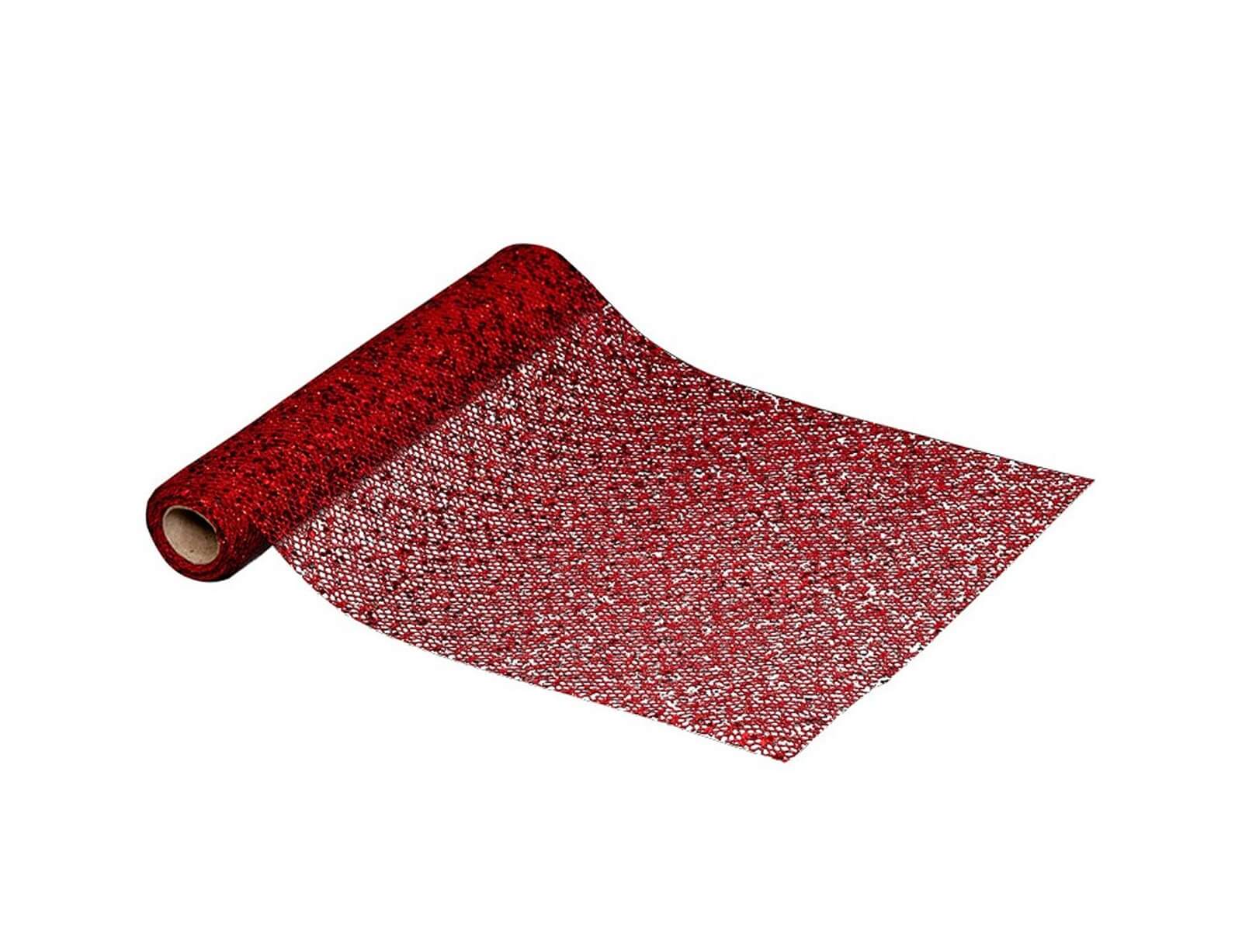 Δημιουργήστε τις πιο όμορφες και μοναδικές συνθέσεις και συμπληρώστε τη διακόσμηση του χώρους σας με ένα διάφανο sequin ύφασμα. Η κόκκινη απόχρωσή του και τα sequins θα φέρουν τη γιορτινή διάθεση στο σπίτι σας και παράλληλα θα δώσουν μια αίσθηση πολυτέλειας και κομψότητας. Μπορείτε να το τοποθετήσετε ως runner συμπληρωματικά πάνω από κάποιο τραπεζομάντηλο στο τραπέζι σας ή να το διπλώσετε και να στολίσετε τα έπιπλά σας και να το συνδυάσετε με διάφορα διακοσμητικά. Από ιδιαίτερα σακουλάκια δώρου μέχρι σουπλά και runner έχετε τη δυνατότητα να δημιουργήσετε ό,τι φανταστείτε.