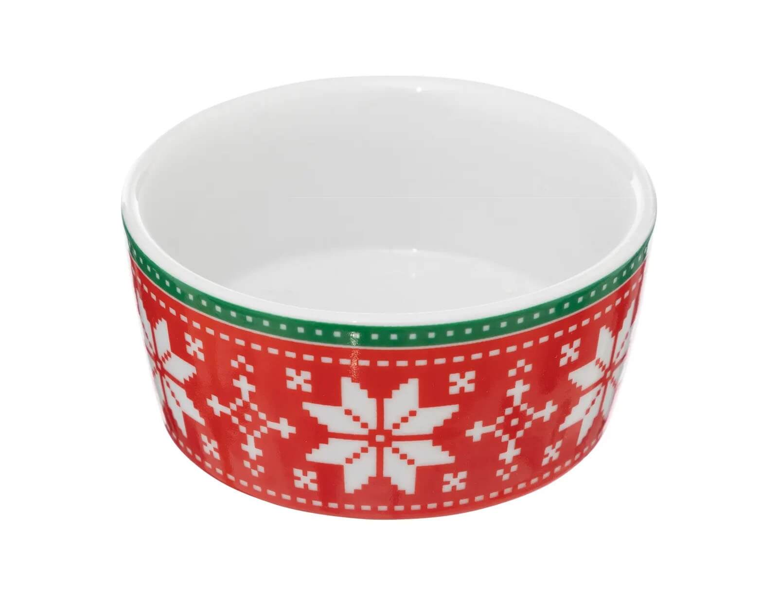 Δημιουργήστε εορταστική ατμόσφαιρα και σερβίρετε τα αγαπημένα σας σνακ ή σάλτσες με το σετ σερβιρίσματος με χριστουγεννιάτικα σχέδια. Το σετ αποτελείται από 3 μπολ διαφορετικών μεγεθών σε αποχρώσεις κόκκινου, πράσινου και λευκού και έναν ξύλινο δίσκο. Ο δίσκος διαθέτει εσοχές για να παραμένουν σταθερά τα μπολ. Τα μπολ είναι κατασκευασμένα από κεραμικό υλικό και ο δίσκος από ξύλο μπαμπού.