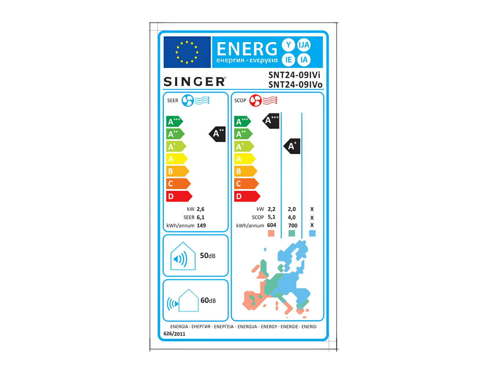 Κλιματιστικό Inverter Singer SNT24-09IVi με WiFi, απόδοση 9000 Btu και ενεργειακή κλάση A++/A+