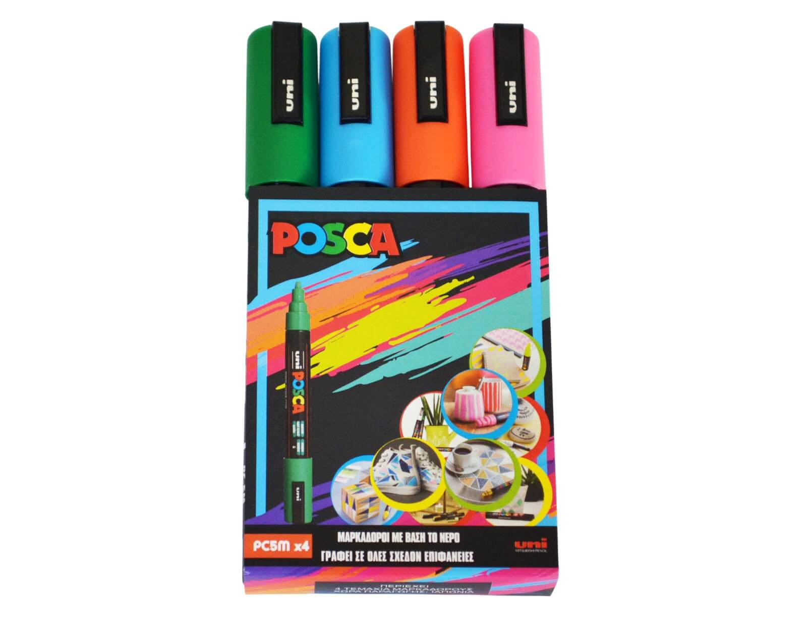 Μαρκαδόροι Σχεδίου Uni Posca PC-5M Medium με πάχος μύτης 1.8-2.5mm - 4 τεμάχια