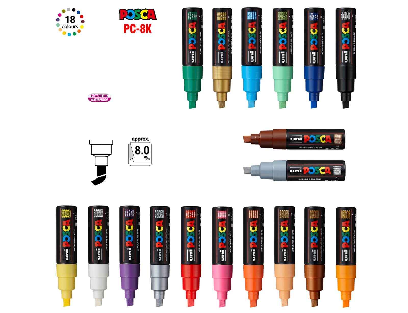 Αφήστε τη δημιουργικότητά σας να απογειωθεί με τον ιδανικό συνεργάτη για όλες σας τις καλλιτεχνικές δημιουργίες. Ο Uni Posca PC-8K συνδυάζει ποιότητα και απόδοση, προσφέροντάς σας πλούσιους χρωματισμούς και ζωντανές λεπτομέρειες σε κάθε σας έργο. Με μύτη διαμέτρου 8.0mm, προσφέρει εξαιρετική ακρίβεια, ενώ μπορείτε να τον χρησιμοποιήσετε σε οποιαδήποτε επιφάνεια.