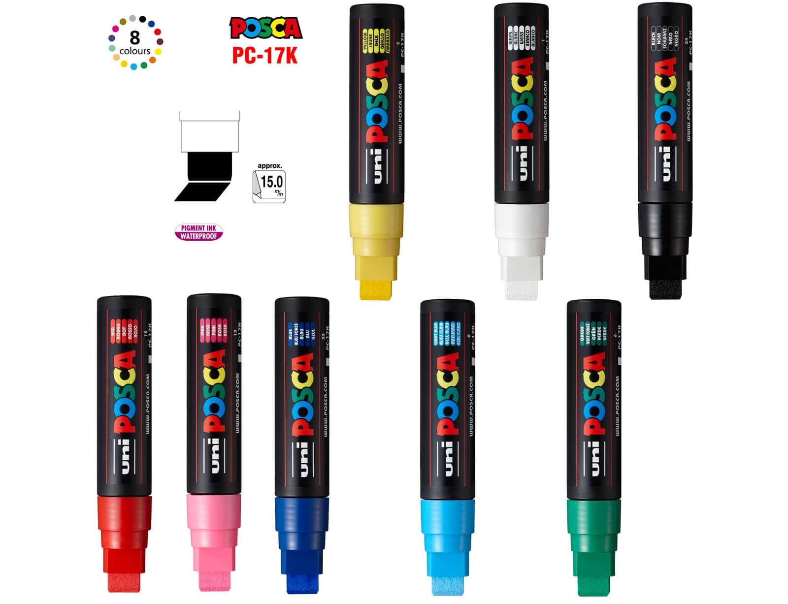 Αφήστε τη δημιουργικότητά σας να απογειωθεί με τον ιδανικό συνεργάτη για όλες σας τις καλλιτεχνικές δημιουργίες. Ο Uni Posca PC-17K συνδυάζει ποιότητα και απόδοση, προσφέροντάς σας πλούσιους χρωματισμούς και ζωντανές λεπτομέρειες σε κάθε σας έργο. Με μύτη διαμέτρου 15.0mm, προσφέρει εξαιρετική ακρίβεια, ενώ μπορείτε να τον χρησιμοποιήσετε σε οποιαδήποτε επιφάνεια.