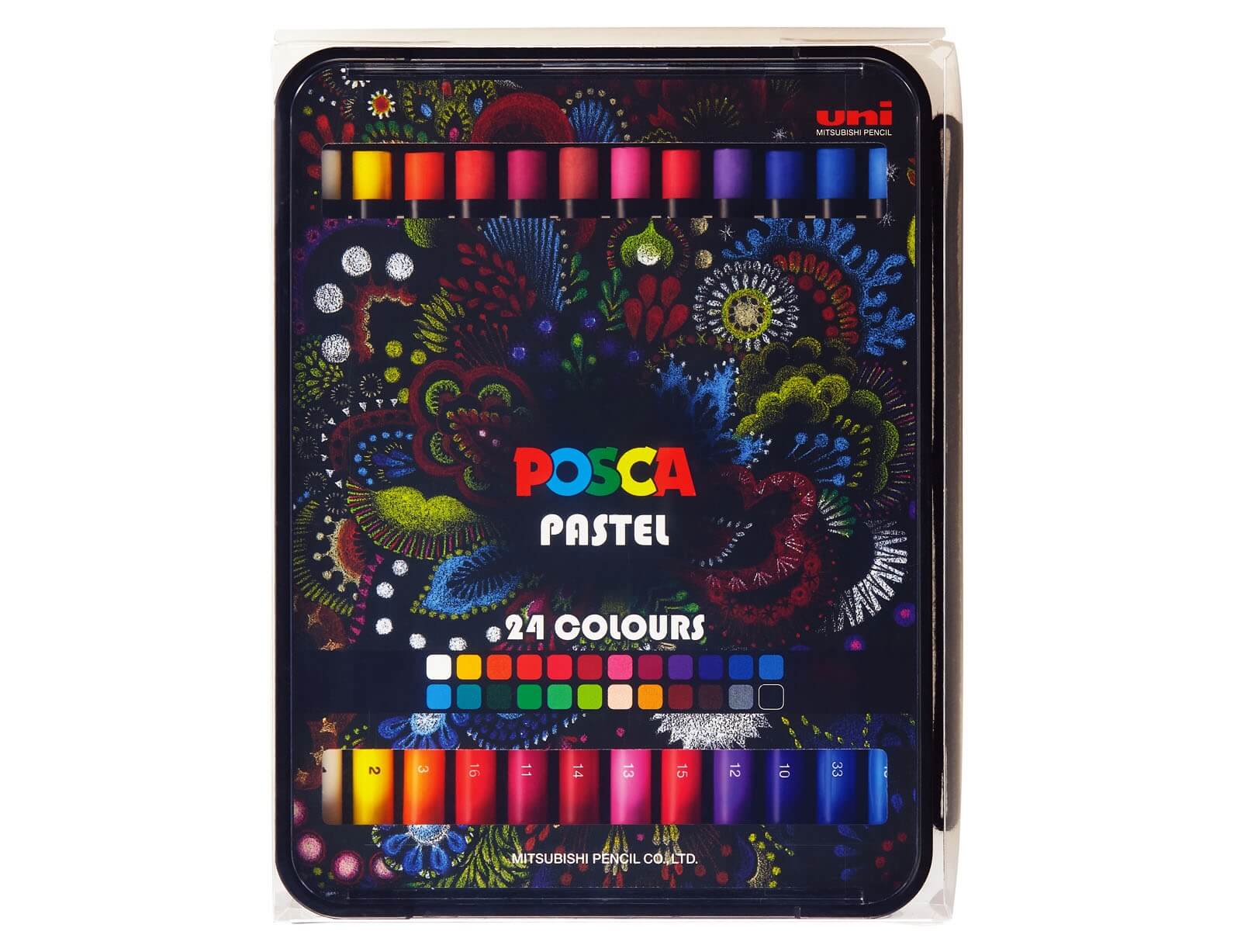 Η νέα σειρά Posca Pastel ολοκληρώνει τη συλλογή χρωμάτων Posca. Η μοναδική τους φόρμουλα περιέχει περισσότερο κερί παρά λάδι, έτσι τα χρώματα είναι ζωντανά με εξαιρετικά απαλό φινίρισμα. Αυτό σημαίνει επίσης ότι τα Posca Pastel δεν αφήνουν σχεδόν καθόλου κατάλοιπα στη σελίδα. Τα χρώματα μπορούν να αναμειχθούν και να επικαλυφθούν, μπορείτε να κολλήσετε, να μπλοκ χρώματος, να διασταυρώσετε, να γρατσουνίσετε και να περιγράψετε. Επιπλέον, μπορείτε να θερμάνετε τα μπαστούνια για να δημιουργήσετε εφέ με υφή. Διαθέσιμα σε 24 χρώματα, τα Posca Pastels μπορούν να χρησιμοποιηθούν σε ξύλο, γυαλί και ύφασμα καθώς και σε παστέλ χαρτόνι και χαρτί.