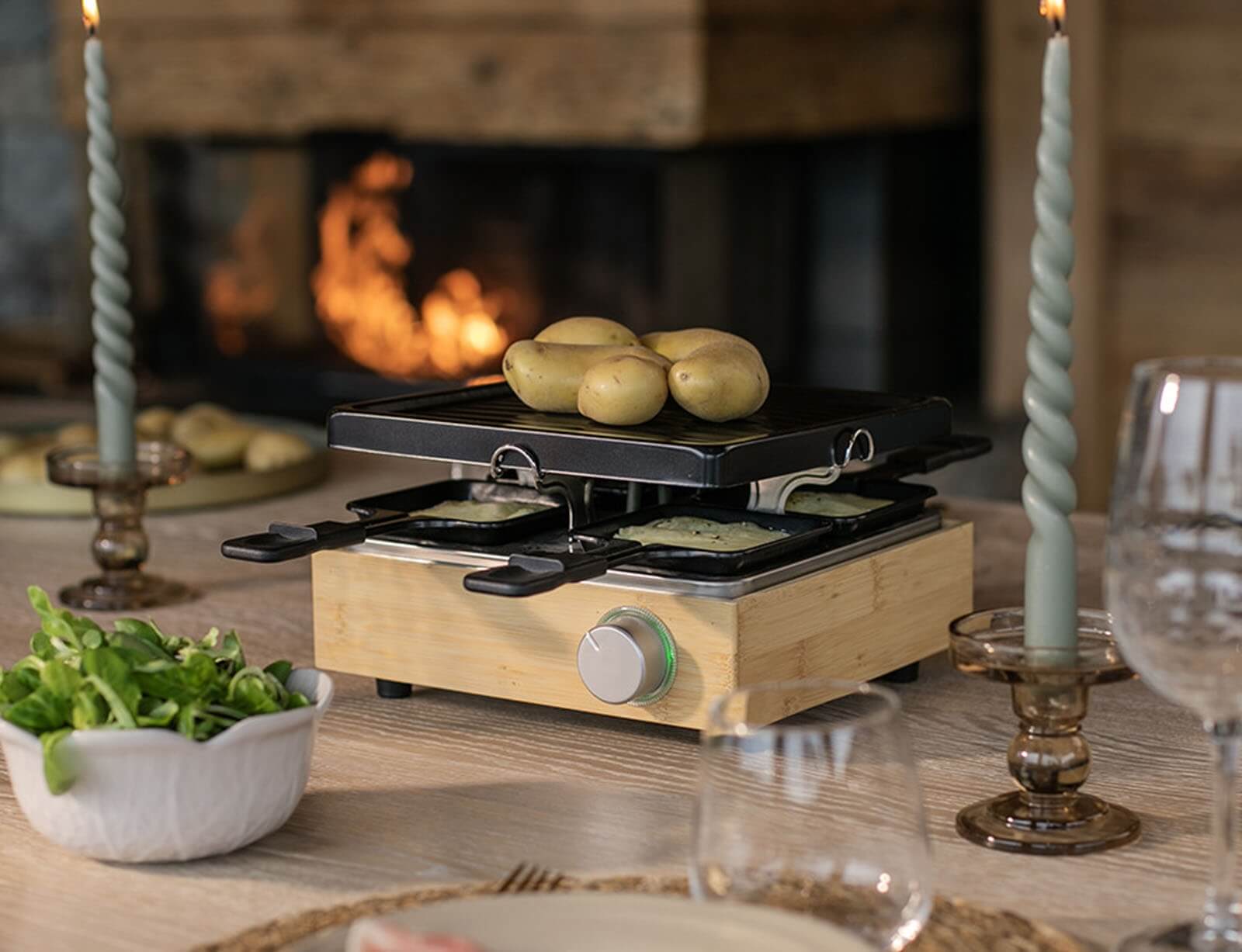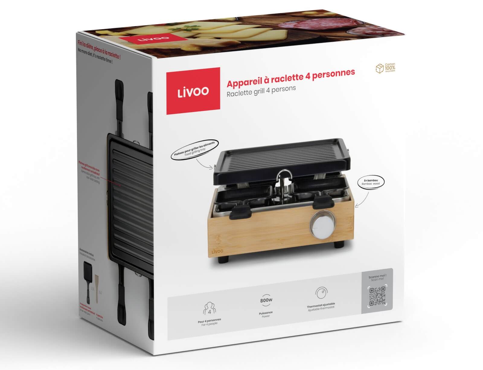 Ανακαλύψτε την απόλυτη εμπειρία γεύσης με το Raclette Livoo DOC311! Ένας σύγχρονος τρόπος σερβιρίσματος, ιδανικός για 4 άτομα περιλαμβάνει μια ηλεκτρική επιτραπέζια σχάρα με μικρά τηγάνια, γνωστά ως τηγάνια raclette, τα οποία είναι ιδανικά για να ετοιμάζετε νόστιμες ομελέτες, τηγανίτες ή λιωμένο τυρί.