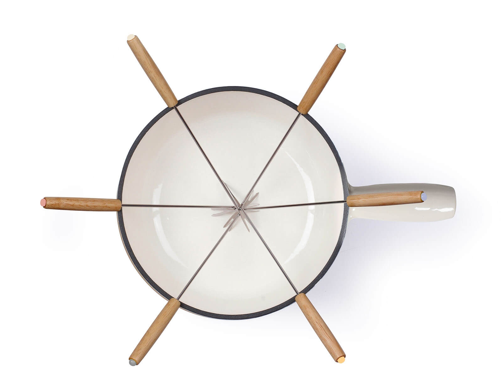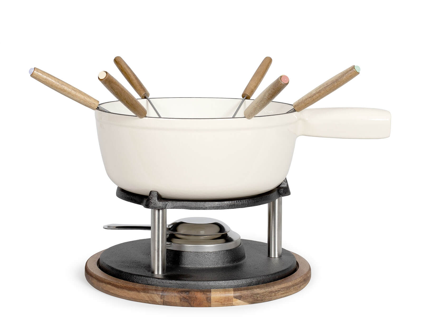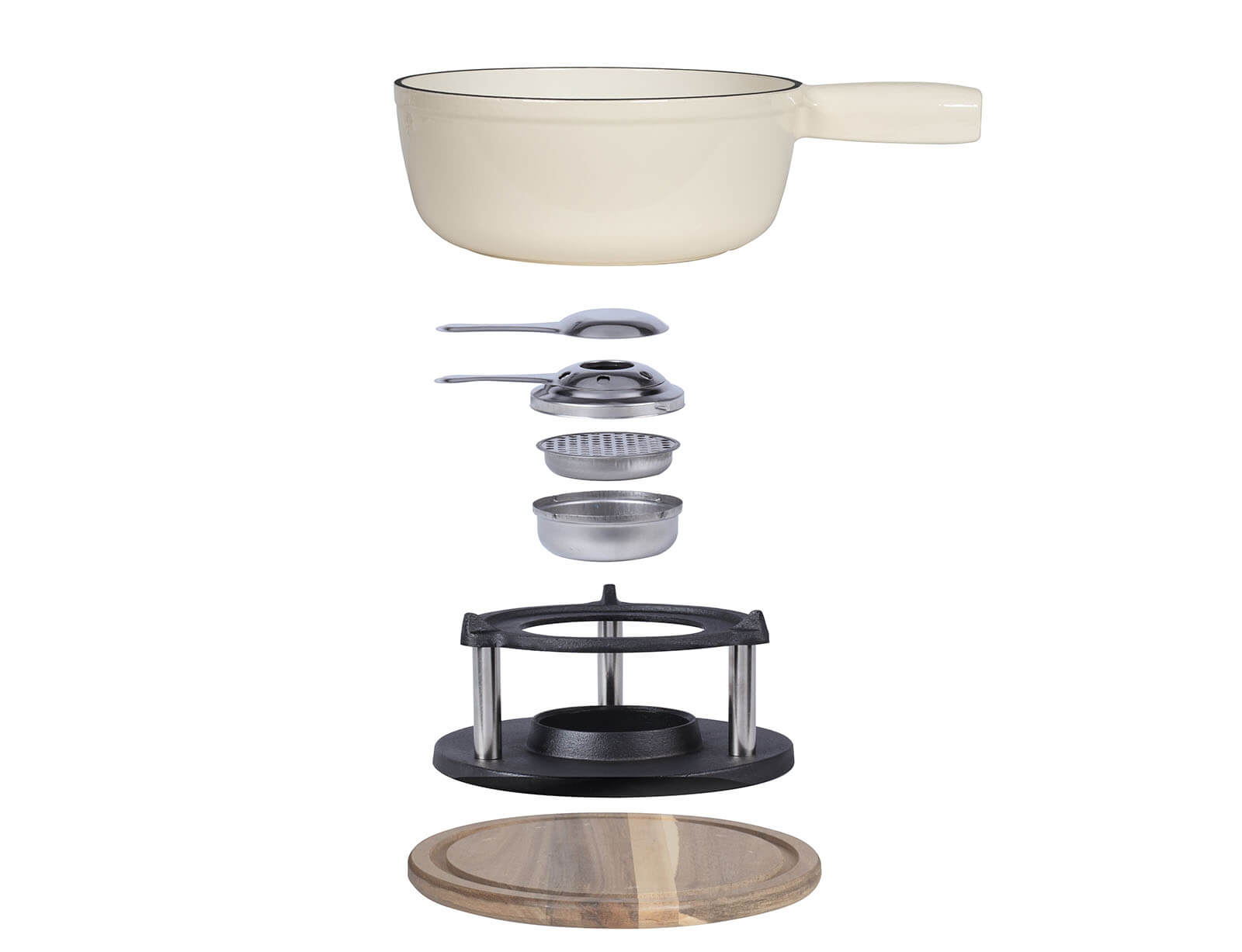 - Caquelon από σμαλτωμένο χυτοσίδηρο και βάση από ξύλο ακακίας