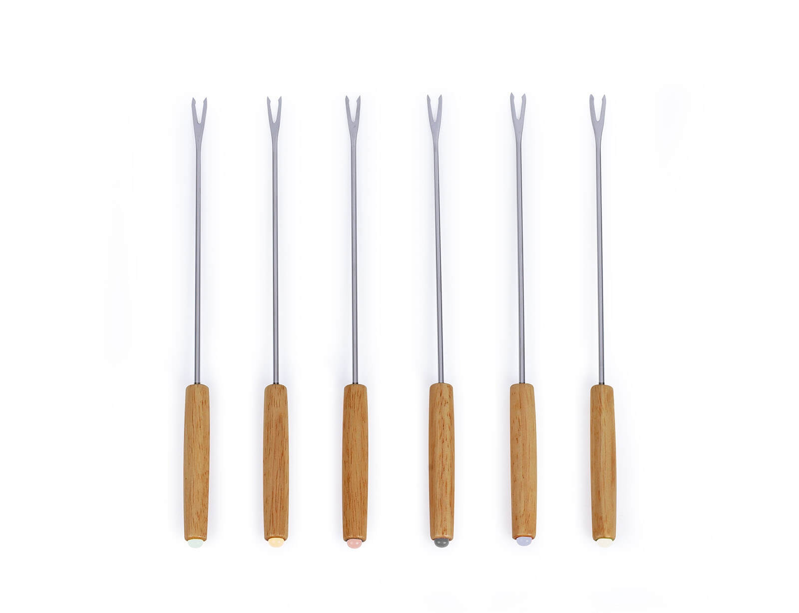- 6 πιρούνια φοντύ από ξύλο ακακίας