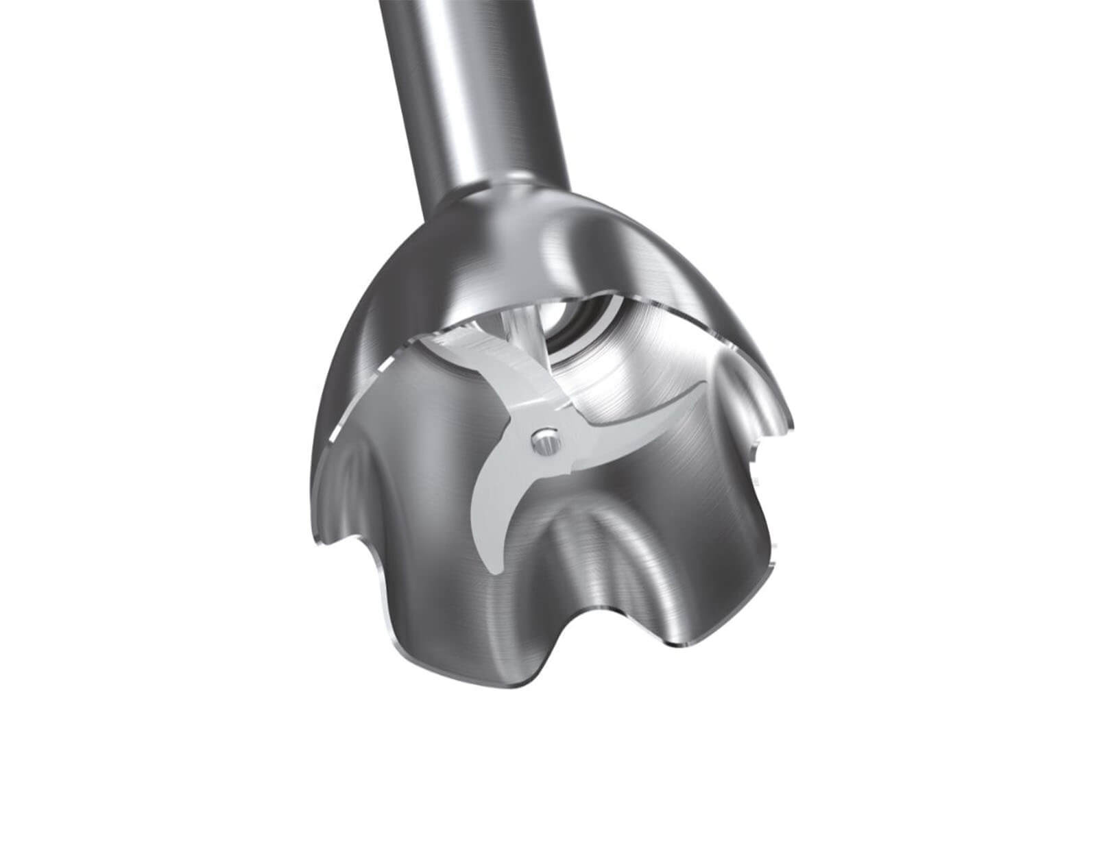 Οι λεπίδες, τόσο στο κρυστάλλινο δοχείο κοπής όσο και στην μεταλλική ράβδο, έχουν δεχθεί ειδική επεξεργασία και διαθέτουν ειδική κλίση για να προσφέρουν άριστο αποτέλεσμα κοπής, γρήγορα και πολύ αποτελεσματικά.