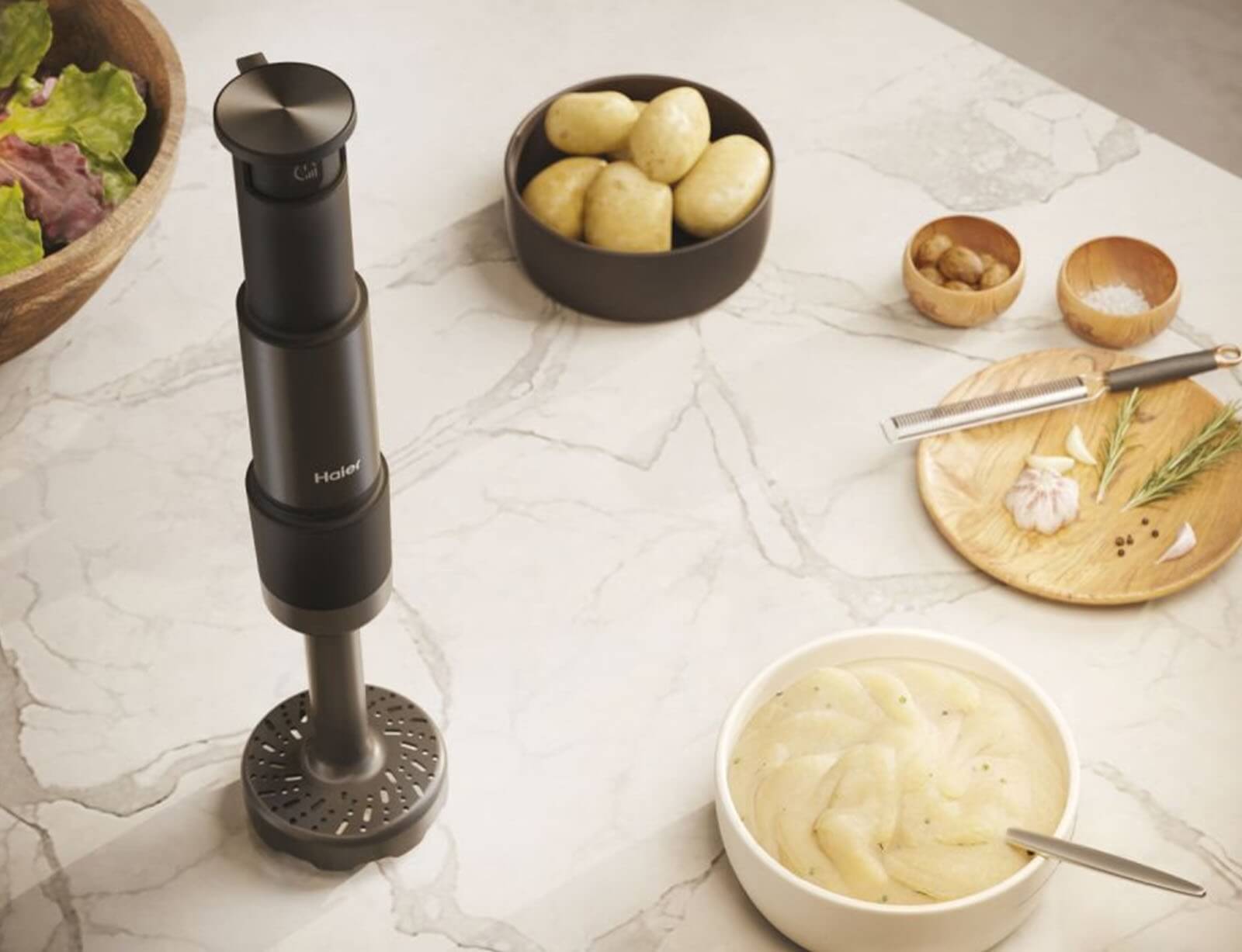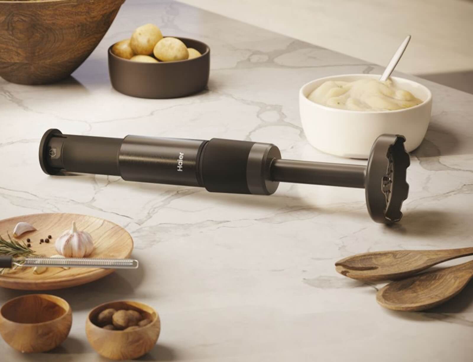 Φαντάζεστε έναν πουρέ χωρίς σβόλους και τελείως απαλό; Μπορείτε να το επιτύχετε χάρη στον Πολτοποιητή, το αξεσουάρ που παρέχεται με το Haier i-Master Series 5 – Multi Blender Χειρός που έχει σχεδιαστεί για να πολτοποιήσει πατάτες και άλλα βραστά λαχανικά.