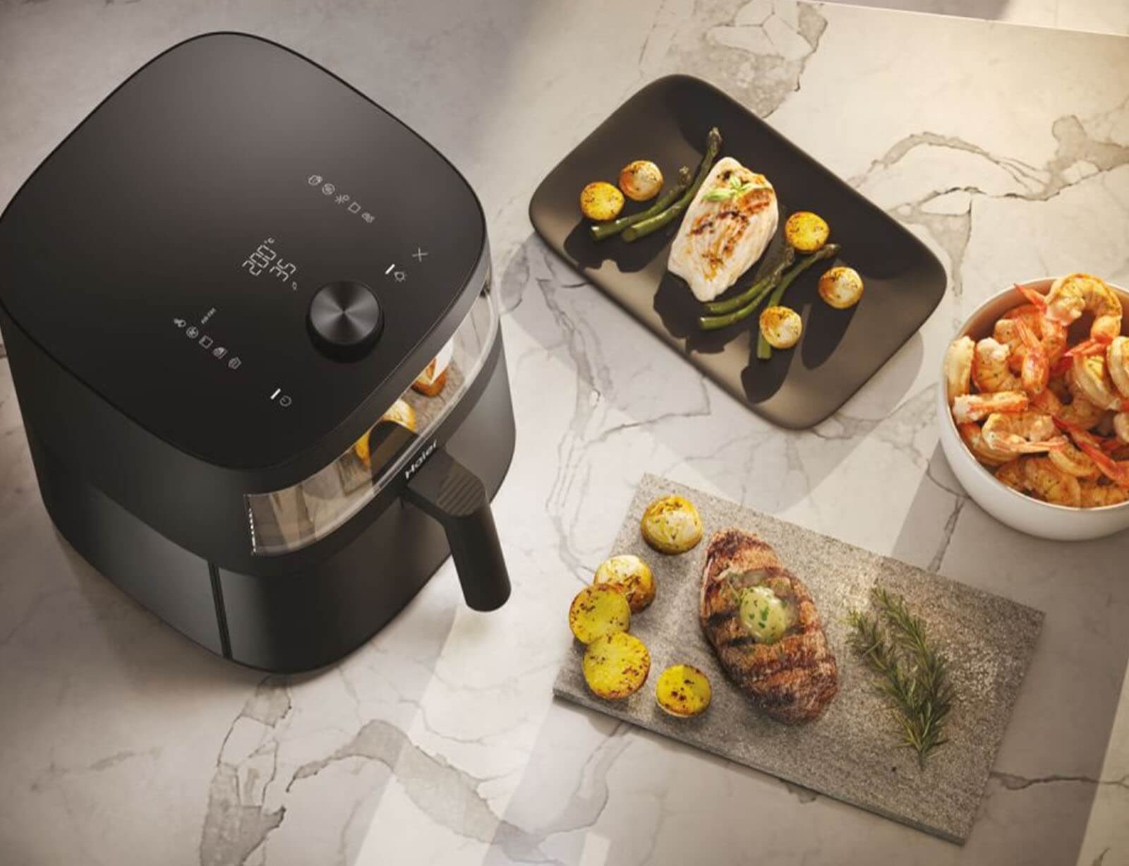Το Haier I-Master Multi Air Fryer Series 5 είναι κάτι περισσότερο από μία φριτέζα αέρος, είναι ένας πραγματικός σεφ με εξαιρετική σχεδίαση. Στην πραγματικότητα, 9 σε 1. Χάρη στον ακριβή και ευρύ έλεγχο θερμοκρασίας του μπορείτε να χρησιμοποιήσετε κάθε μέθοδο παρασκευής φαγητού, συμπεριλαμβανομένου του αργού μαγειρέματος και του ψησίματος. Επιπλέον, το επάνω διαφανές γυάλινο παράθυρο είναι εύκολο στη χρήση και τον καθαρισμό, επιτρέποντάς σας να ελέγχετε τον τρόπο μαγειρέματος χωρίς να ανοίξετε το καλάθι και να χάσετε τη θερμότητα. Ένα ολοκληρωμένο εργαλείο για την κουζίνα σας που σας κάνει να εξοικονομείτε έως και 70% ενέργεια, 50% χρόνο και 90% θερμίδες.