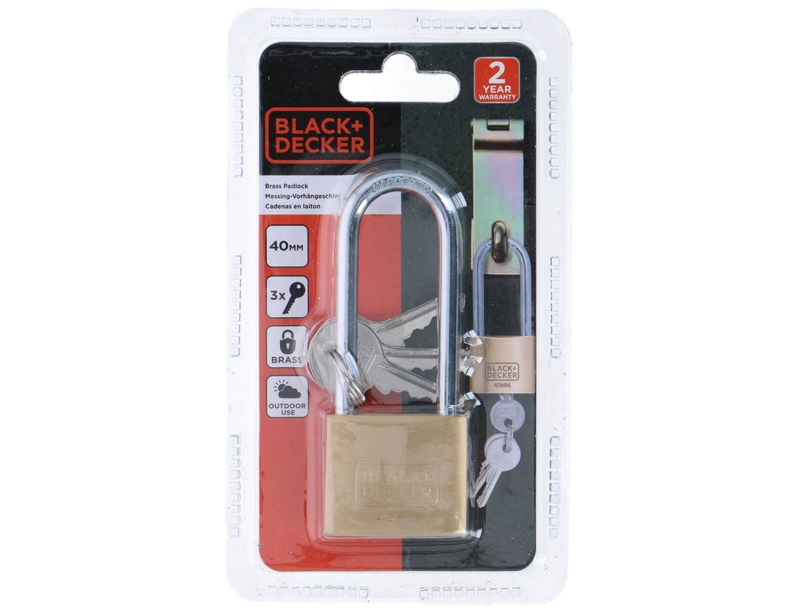 Λουκέτο ασφαλείας μακρύλαιμο Black+Decker με 3 κλειδιά - 40mm
