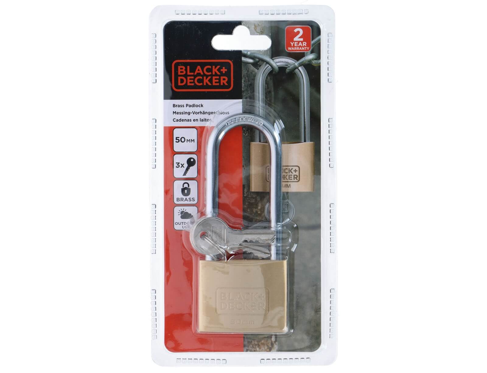 Λουκέτο ασφαλείας μακρύλαιμο Black+Decker με 3 κλειδιά - 50mm