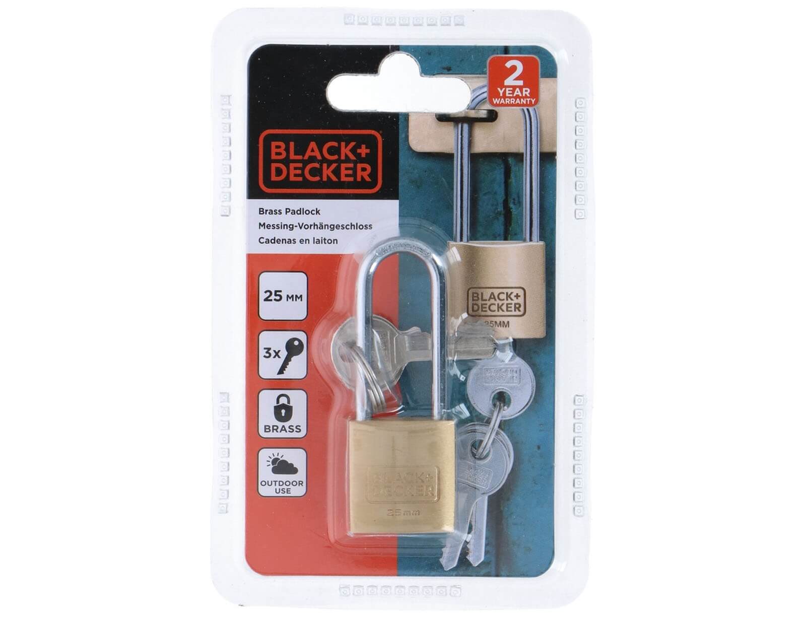 Λουκέτο ασφαλείας μακρύλαιμο Black+Decker με 3 κλειδιά - 25mm