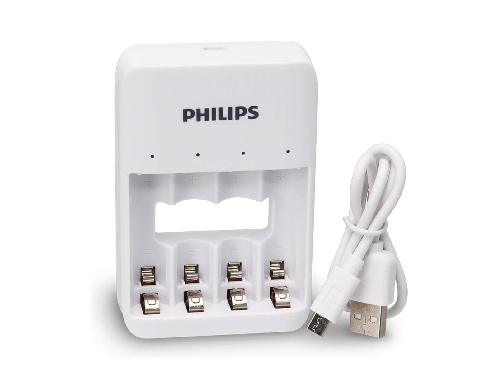 Με ορισμένες συσκευές φαίνεται ότι αντικαθιστάτε συνεχώς τις μπαταρίες. Εξαιρετικά άβολο και επίσης μη φιλικό προς το περιβάλλον. Ευτυχώς, μπορείτε να το λύσετε αυτό με επαναφορτιζόμενες μπαταρίες. Ο φορτιστής μπαταρίας της Philips είναι χρήσιμος εδώ. Ο γενικός φορτιστής USB προσφέρει χώρο για 2 επαναφορτιζόμενες μπαταρίες ΑΑ και 2 επαναφορτιζόμενες μπαταρίες ΑΑΑ. Επιπλέον, μπορείτε να χρησιμοποιήσετε το φορτιστή μπαταρίας οπουδήποτε στον κόσμο χάρη στην έξοδο micro USB.